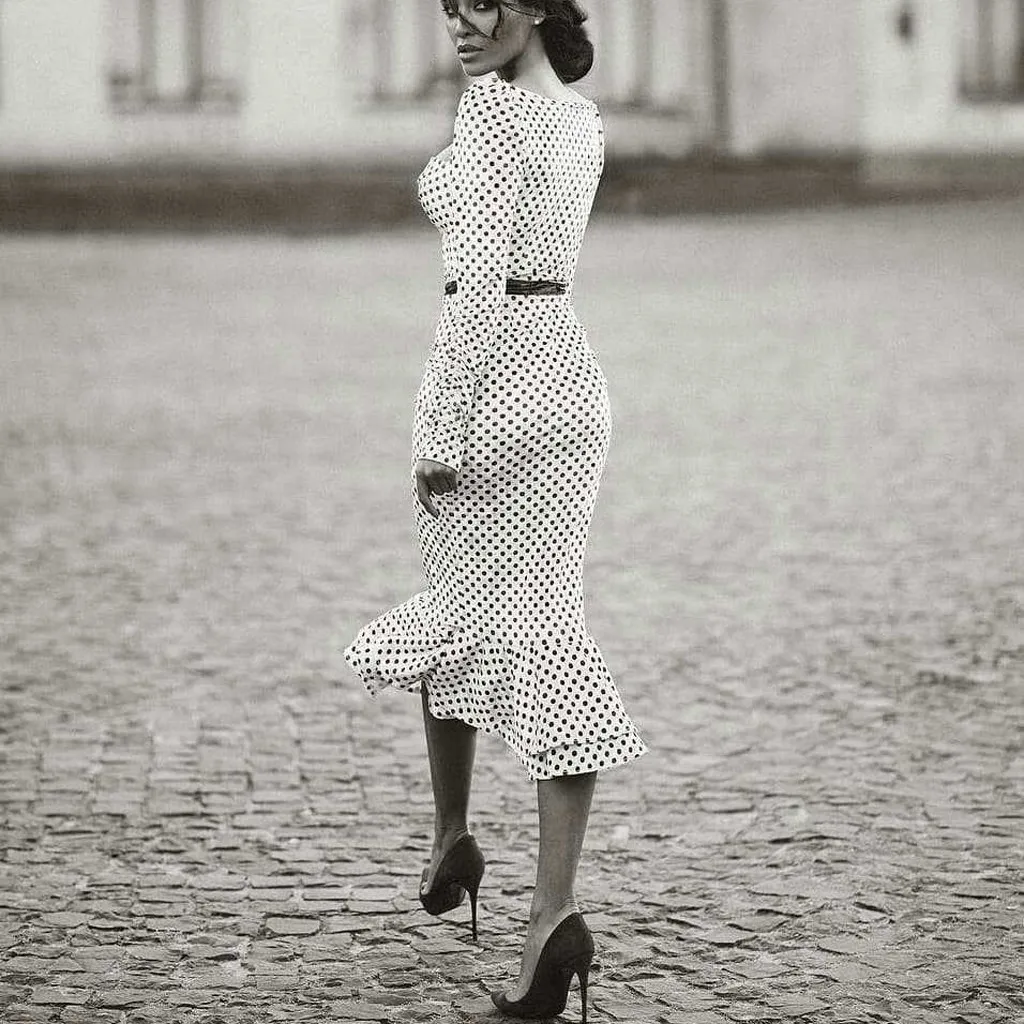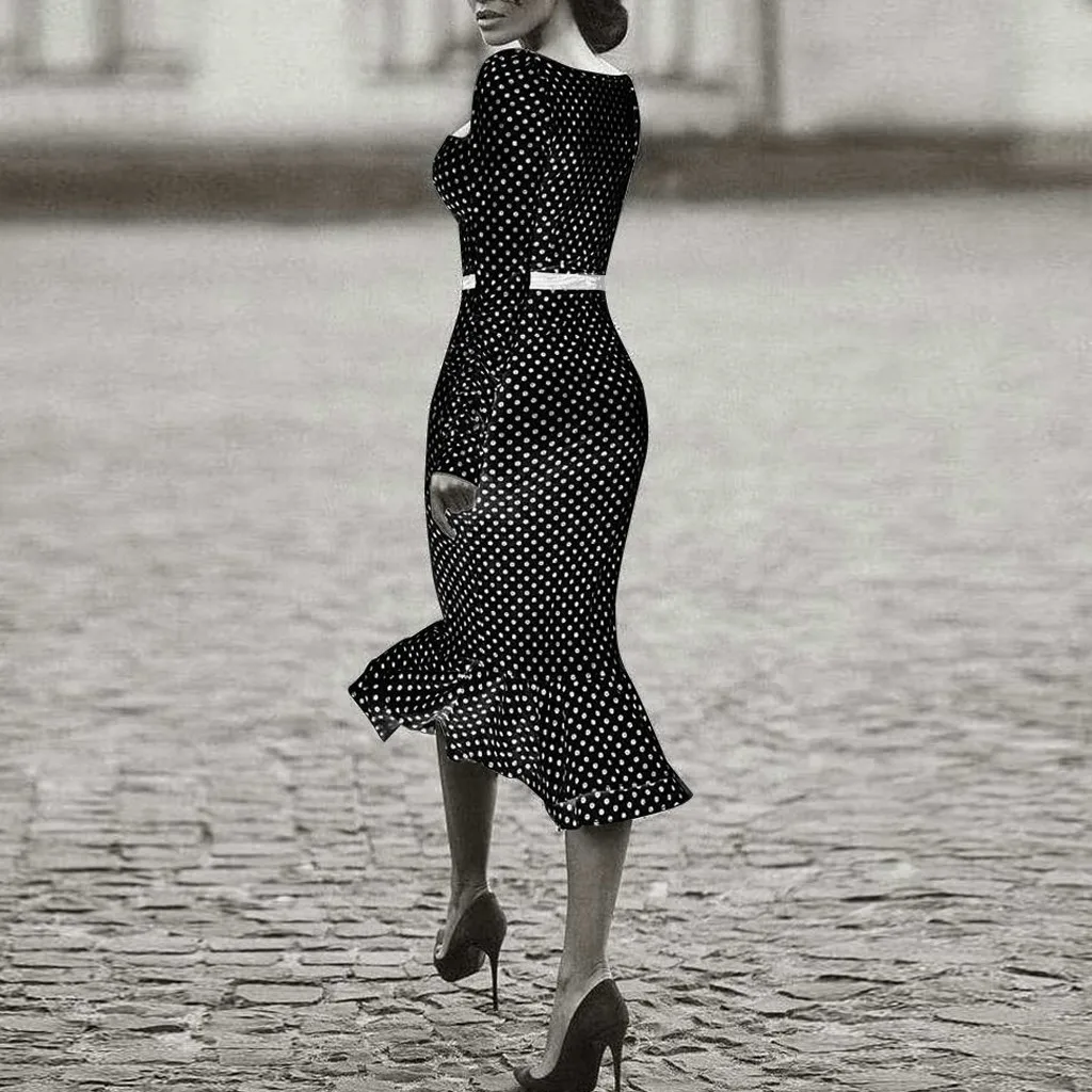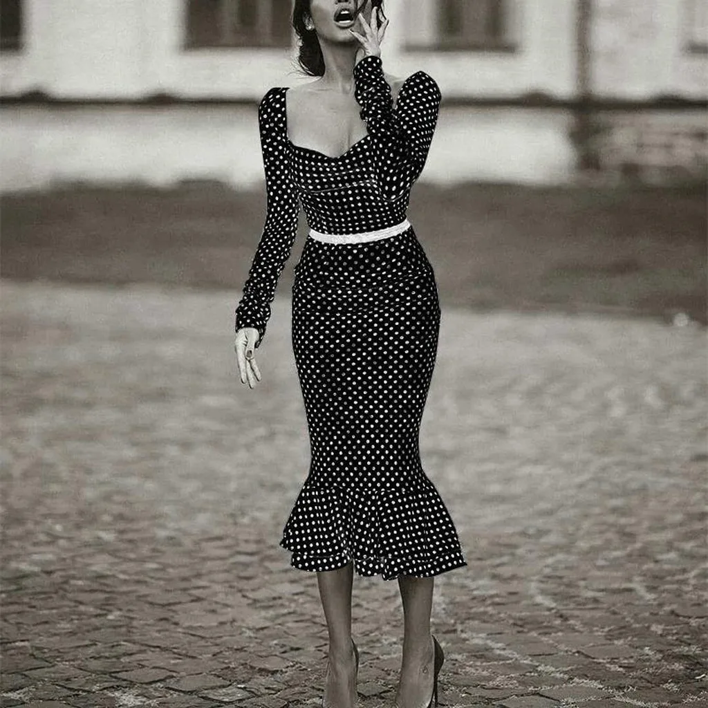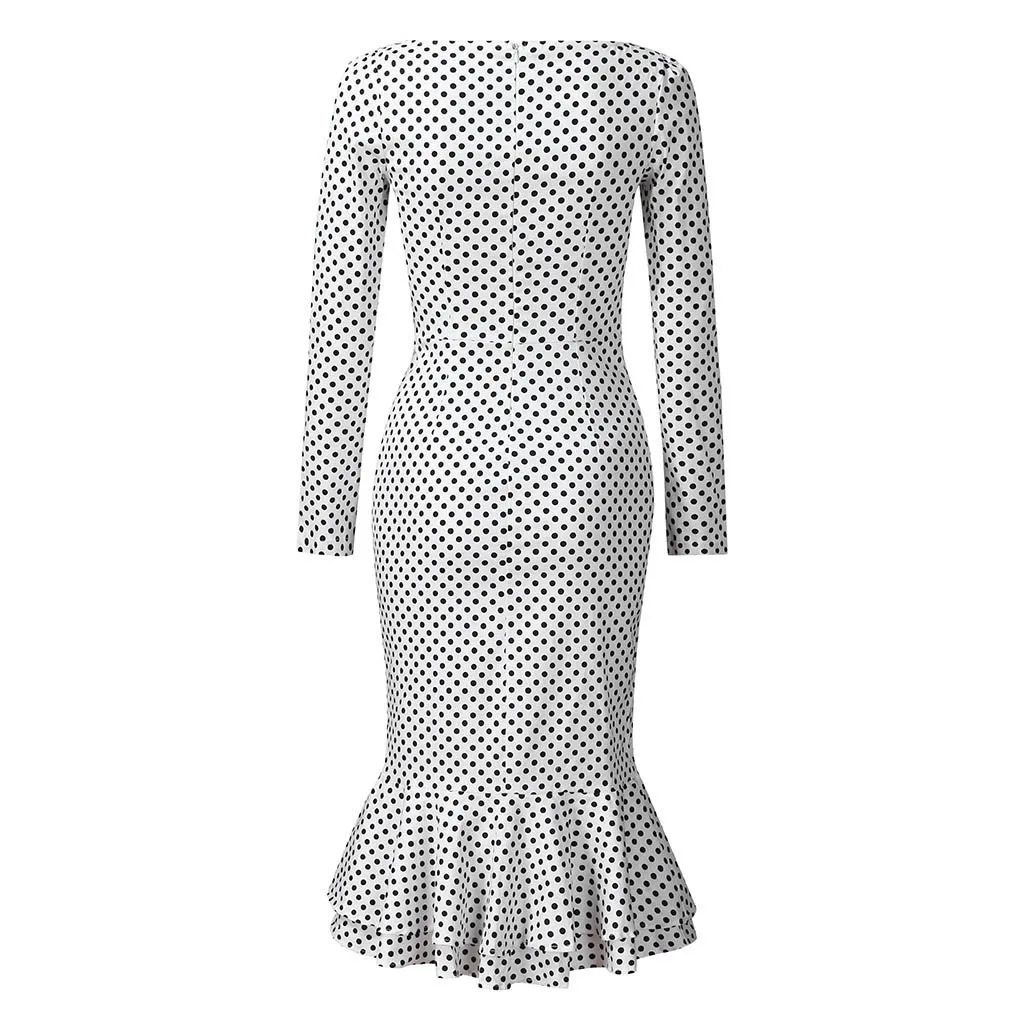 Женское платье с длинным рукавом и квадратным воротником в горошек печатных обтягивающее коктейльное платье, платье на выпускной