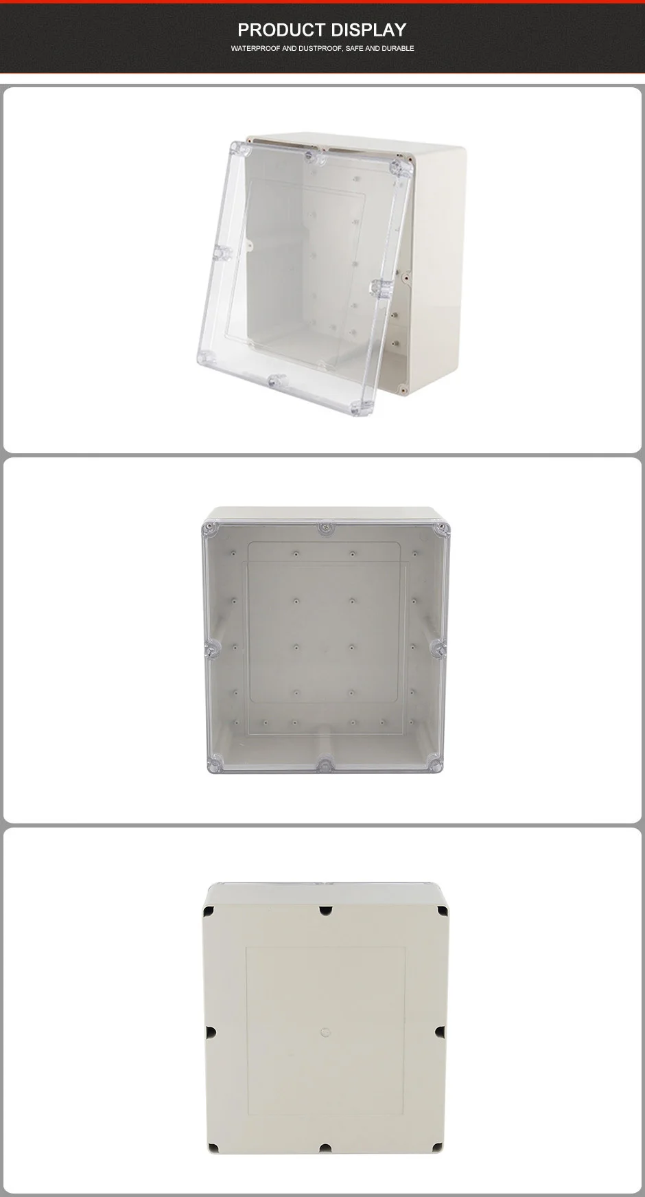 Название продукта: Пластик водонепроницаемая распределительная коробкаВнешний Размеры:300*280*140 ммМатериал:Материал: АБС-пластик/ПВХ пластик Уровень защиты:IP65 Функция:Водонепроницаемый/Защита от пыли Внешний вид: Прозрачный чехол