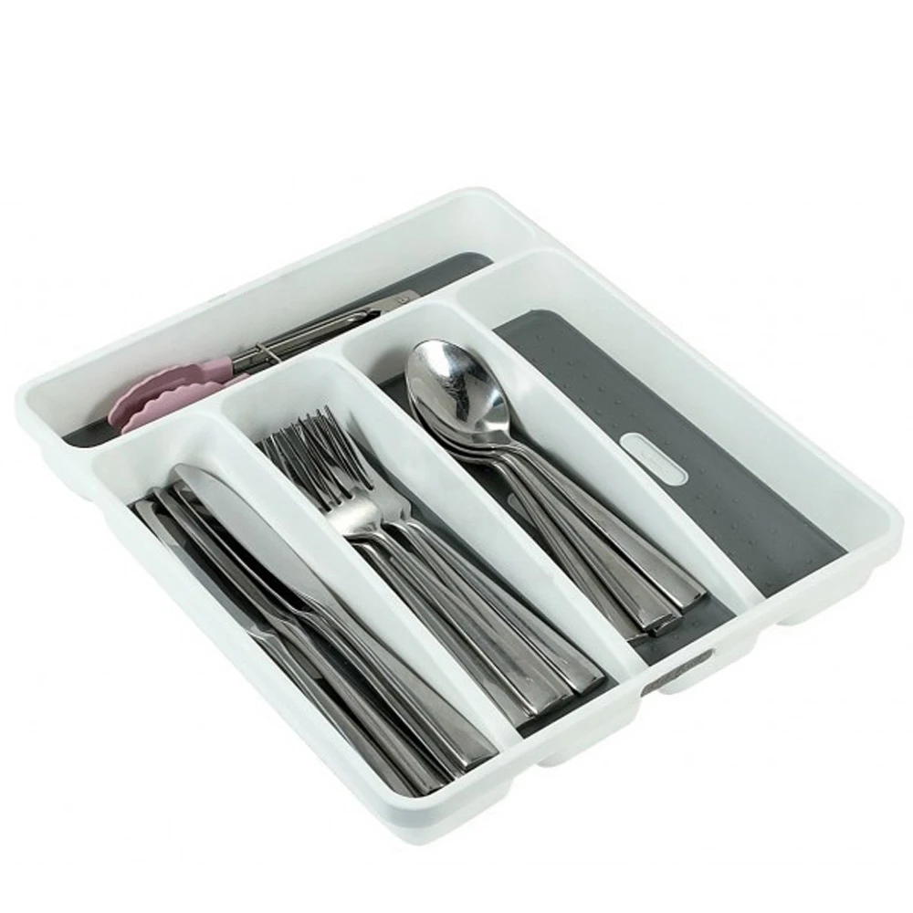 Наши столовые приборы лоток 6 отсеков лоток, который плотно прилегают кЛюбая кухня поможет вам в организации столовых приборов и посуды. Закругленные углы и внутренняя мягкая подкладка делают этот лоток из серебра очень функциональным, простым в очистке и эстетически приятным. К вашим услугам Нескользящие резиновые ножки и подкладка с мягким захватом для обеспечения того, чтобы предметы оставались на своем месте. Изготовлен из высококачественного, без BPA пластика.