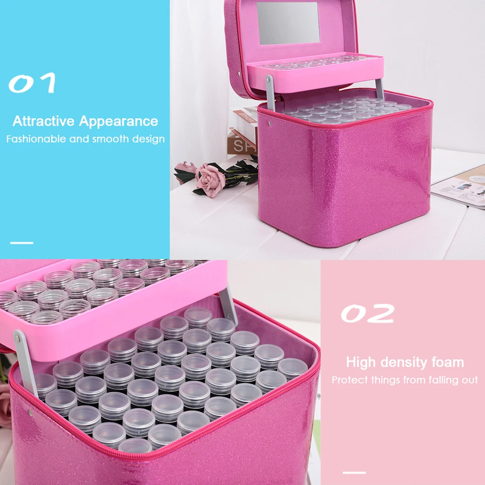 2-слойный дизайн, полностью 126 слотов для держит детали по отдельности, вы можете выбрать любой цвет для прикрепления алмазов по своему усмотрению, отдельно от других вещей.