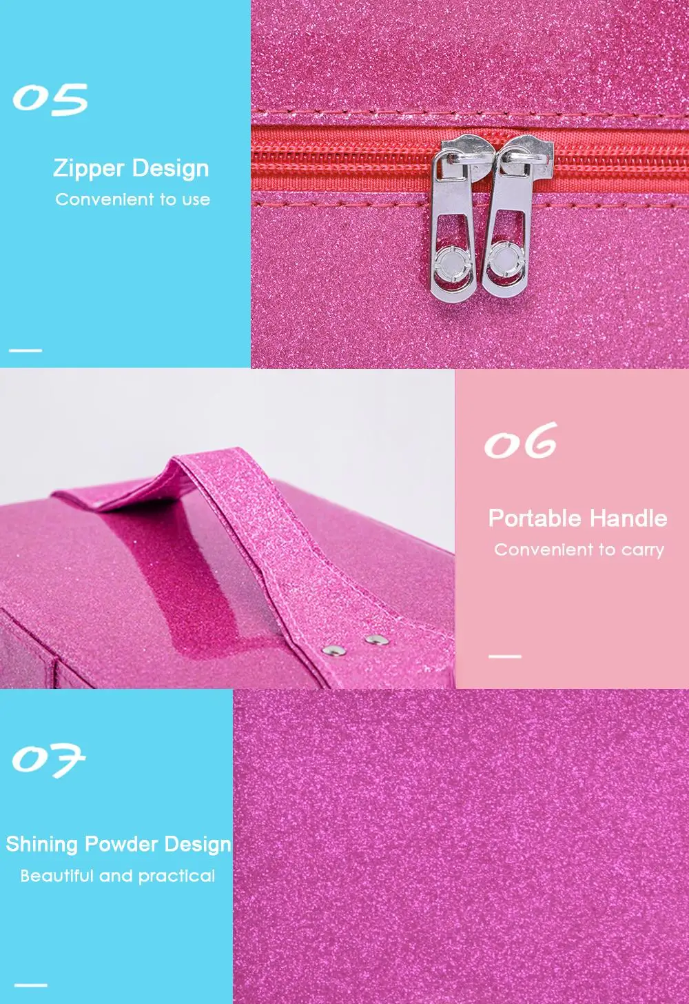 Дизайн с двойной молнией, более удобный в использовании; Портативная ручка, Легко переносит чехол.