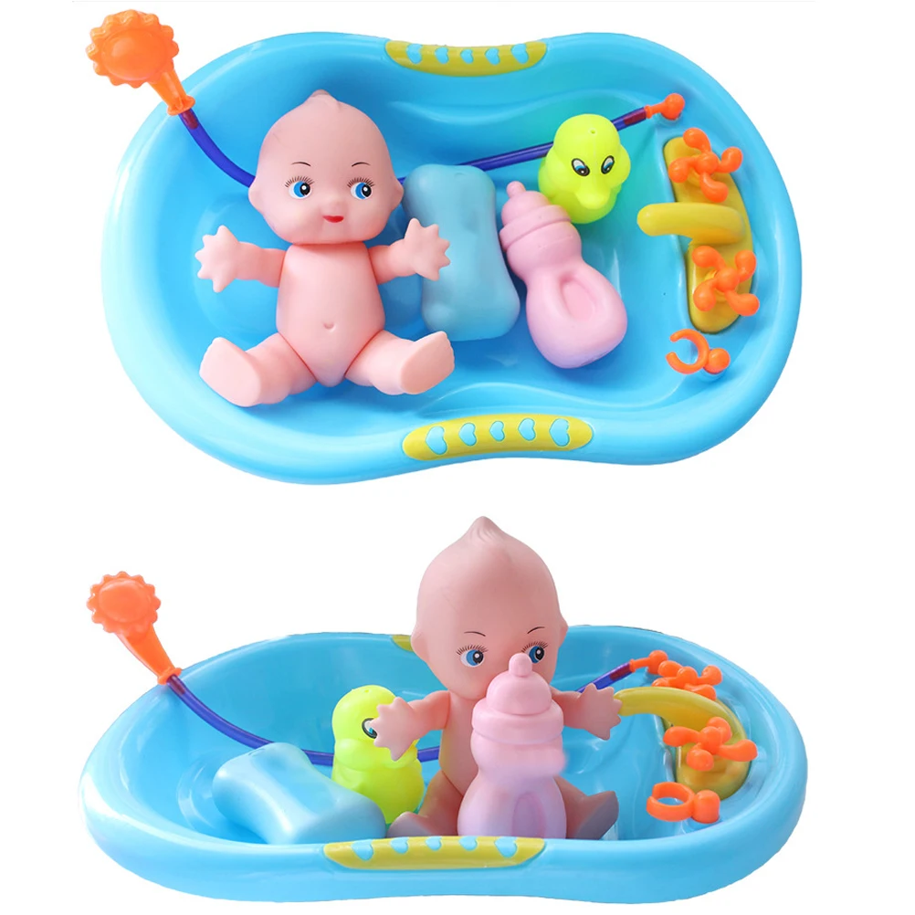 2 комплекта, пластиковая Ванна с маленькой куклой Bah, игрушечный набор, классический набор для ванн, Детские водяные игрушки для мытья, плавающая игрушка, детские игрушки для душа