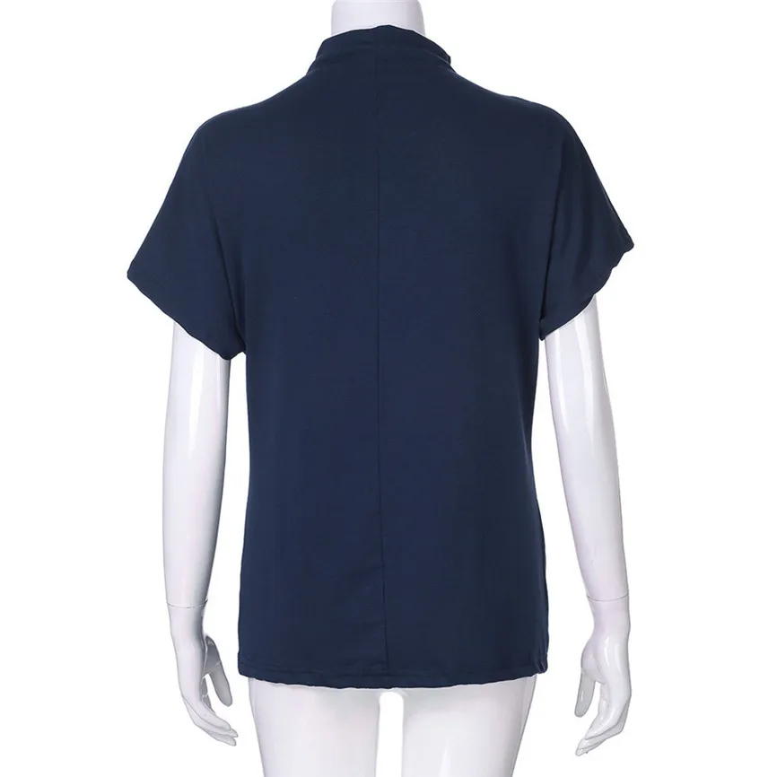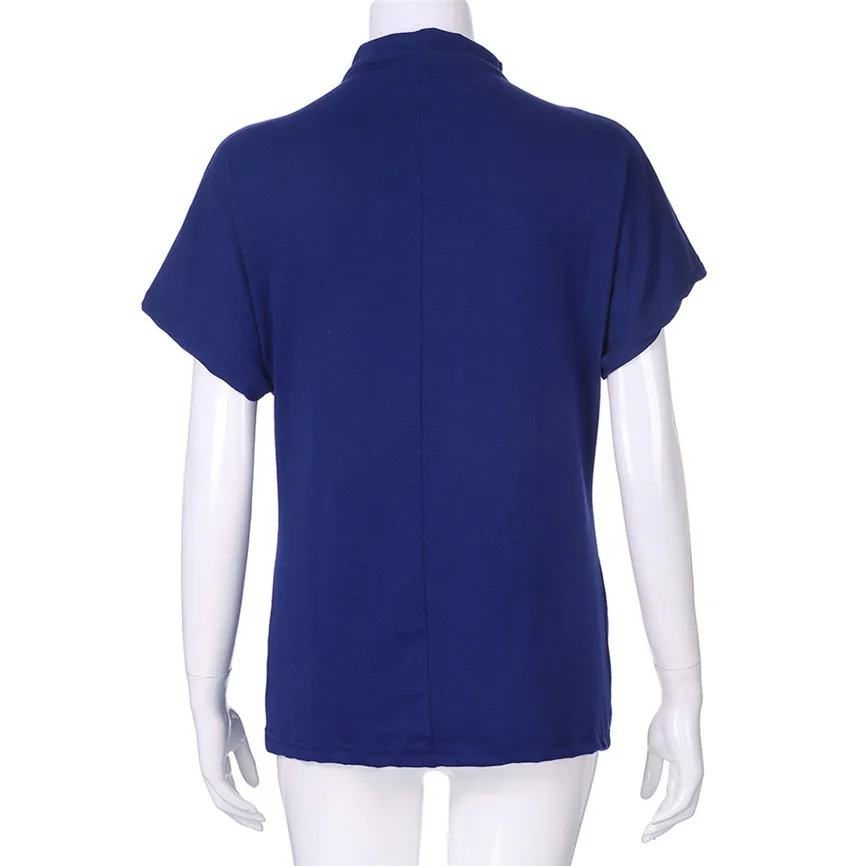 Женская водолазка с коротким рукавом, хлопковая однотонная Повседневная Блузка, топ, футболка, плюс размер
