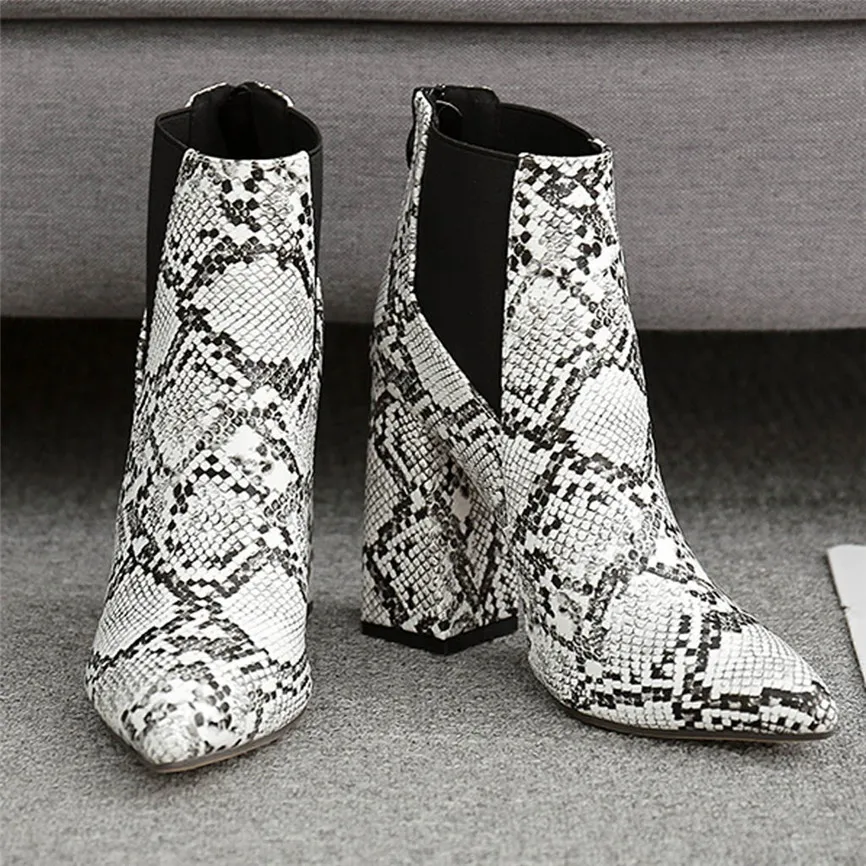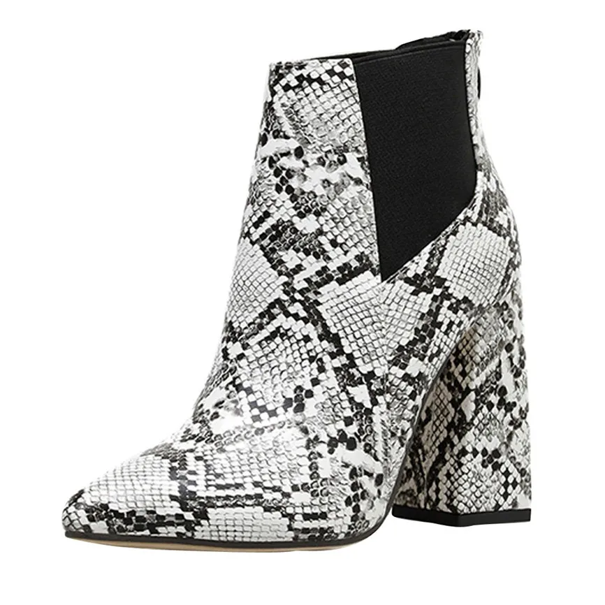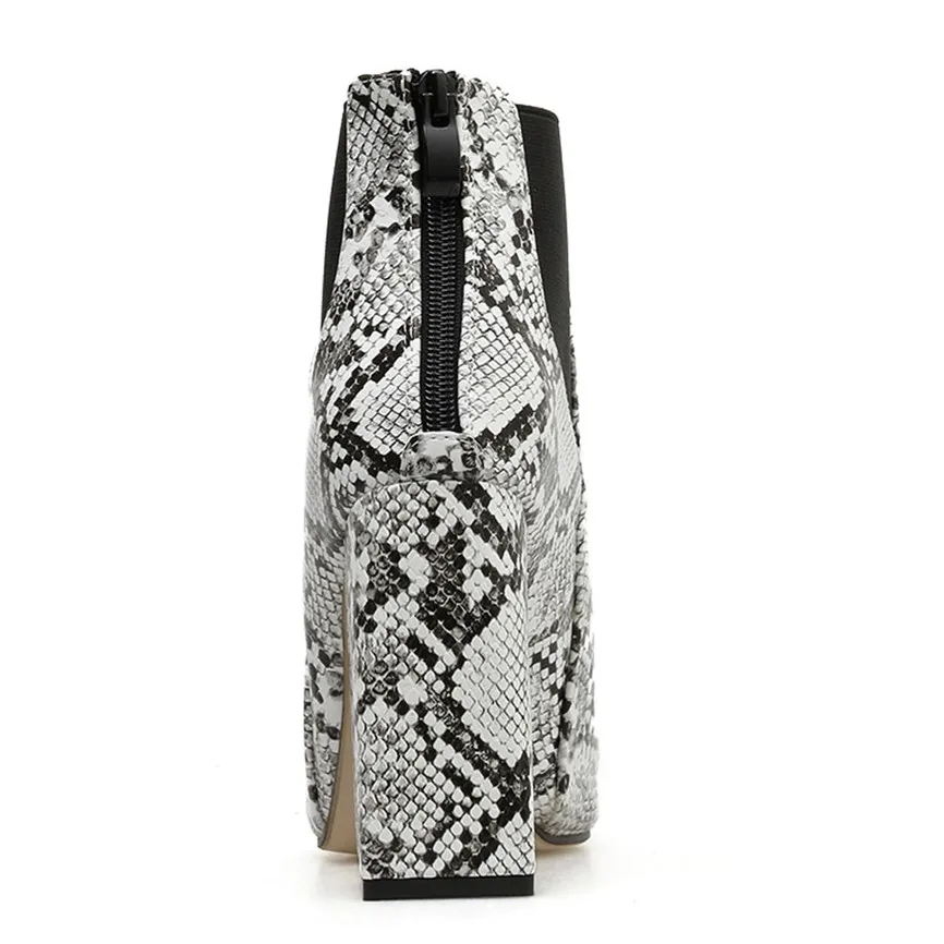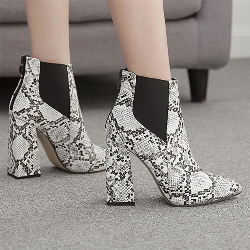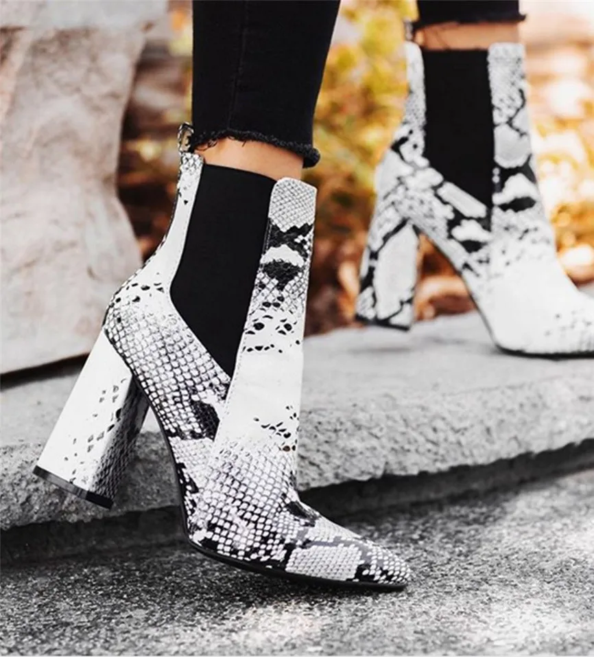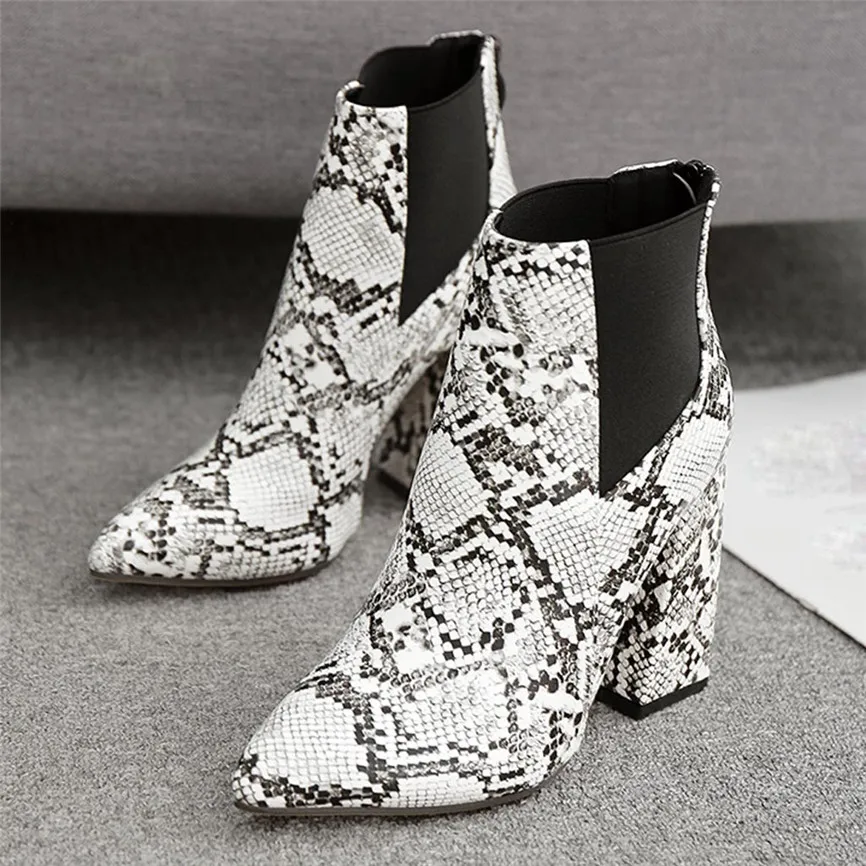 Женские короткие ботинки; ботильоны на толстом каблуке; обувь на высоком каблуке; ботинки со змеиным узором и эластичной лентой; Botas Feminino Para Inverno De 2019