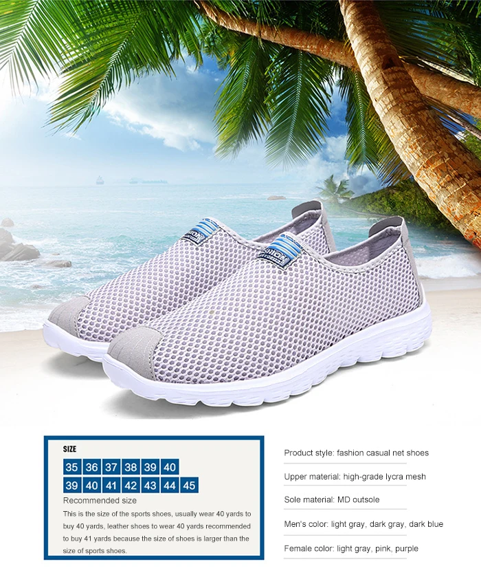Мужская повседневная обувь с дышащей сеткой, легкие слипоны для пар, уличные лоферы, Размеры 35-44