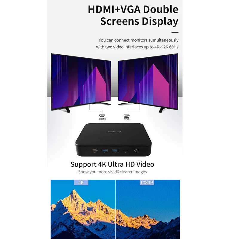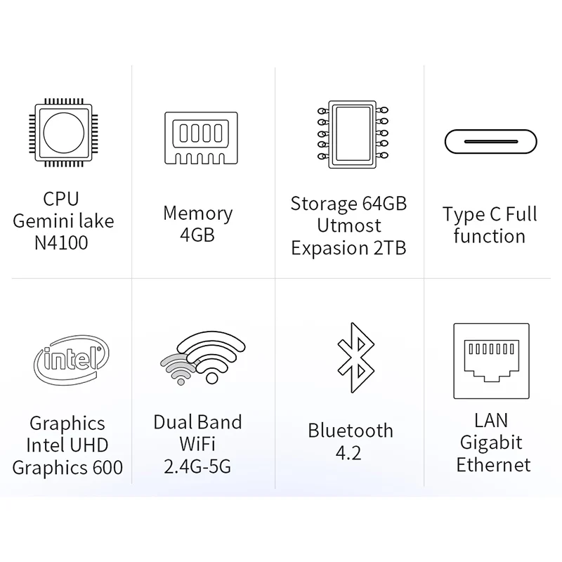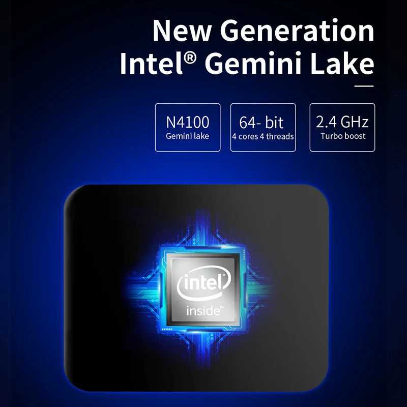 Джемпер ezbox N4 Мини ПК, Intel Gemini Lake N4100 4 Гб оперативной памяти, 64 Гб встроенной памяти, 2,4G/Wi-Fi 5 ГГц Портативный ПК с ОС Windows 10 Поддержка Hdmi/Vga
