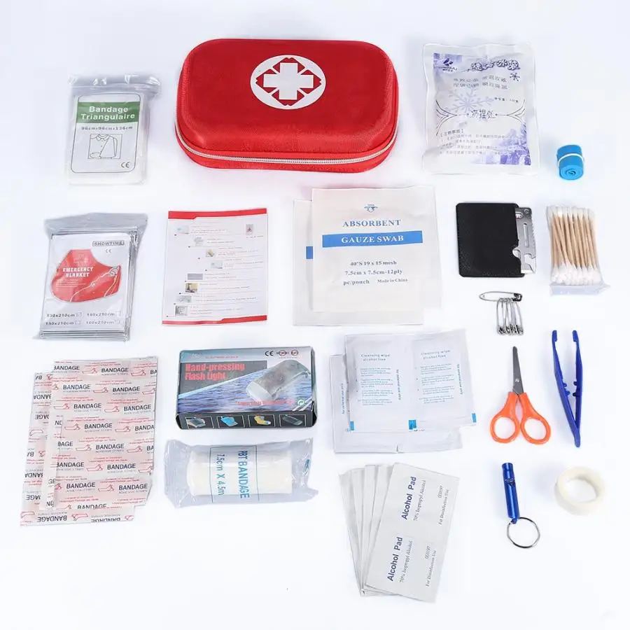 1. Этот аптечка содержитЧехол 1 шт.18 видов аварийных инструментов, таких как бандаж, пинцет, тампоны, спиртовые прокладки и так далее, очень удобно и практично в непредвиденных чрезвычайных ситуациях.