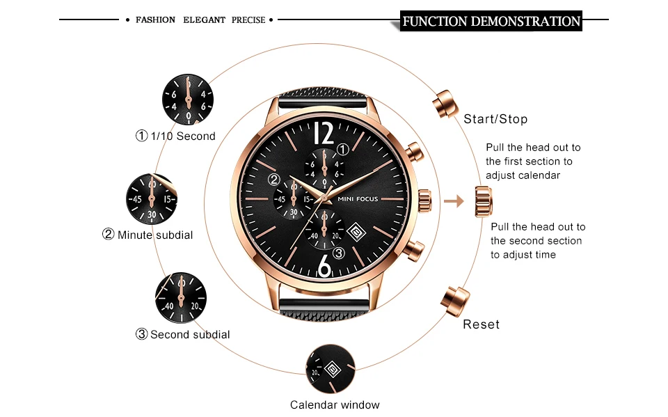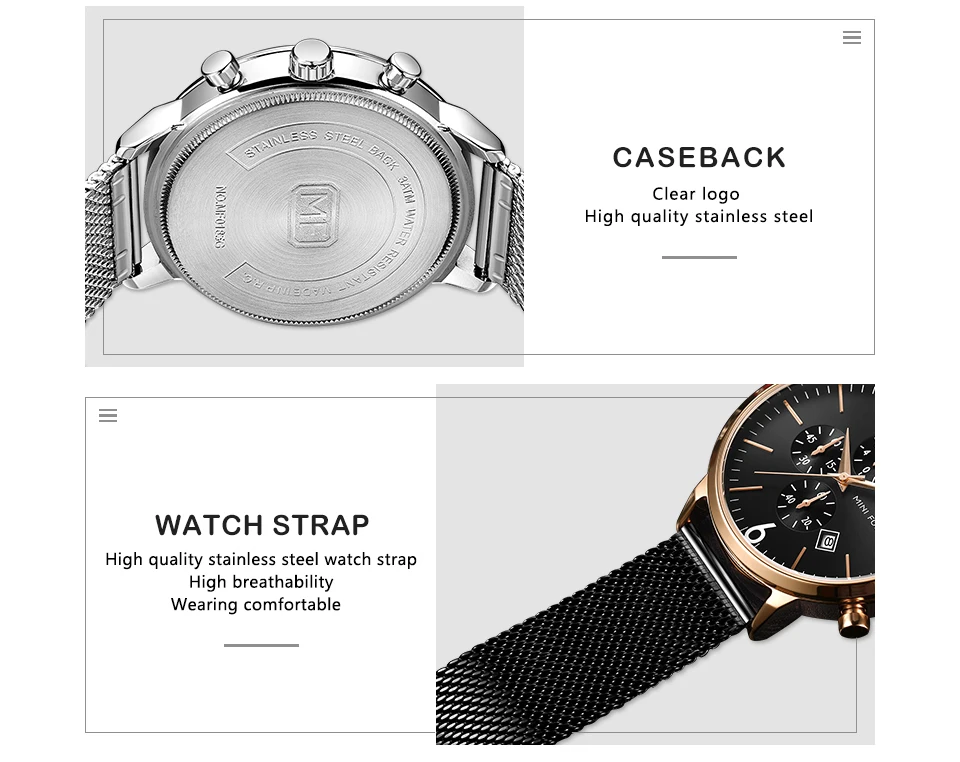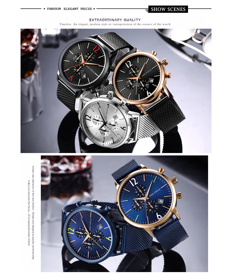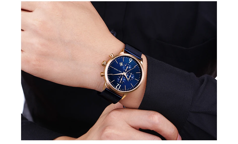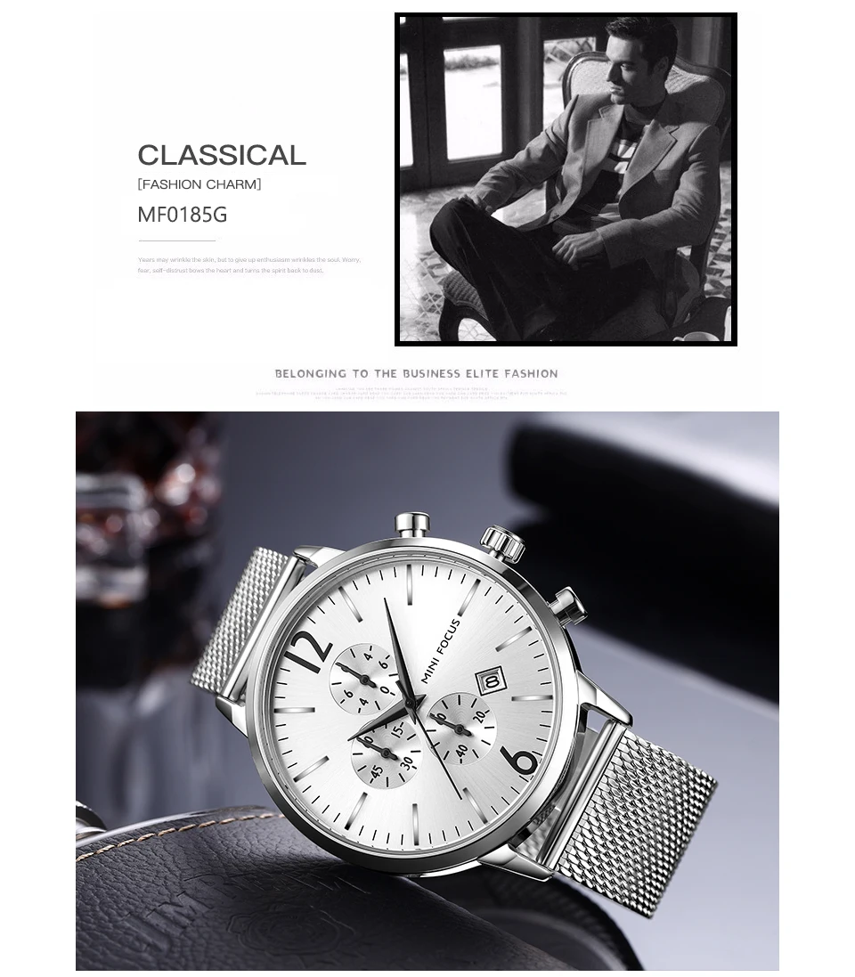 Мини фокус мужские спортивные военные часы из нержавеющей стали водонепроницаемые Модные кварцевые часы
