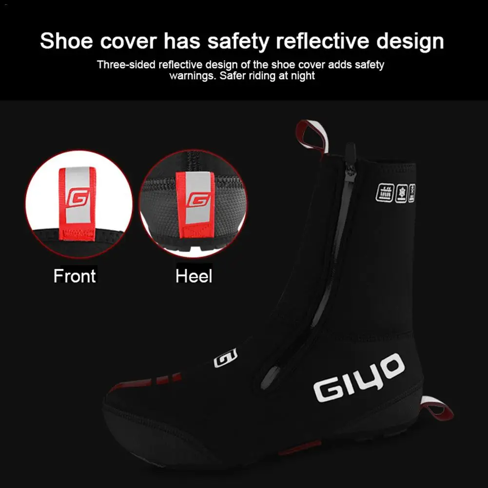 Чехол для обуви изготовлен из водонепроницаемой и высокоэластичной ткани с защитным слоем передней части, светоотражающим логотипом и водонепроницаемой молнией.