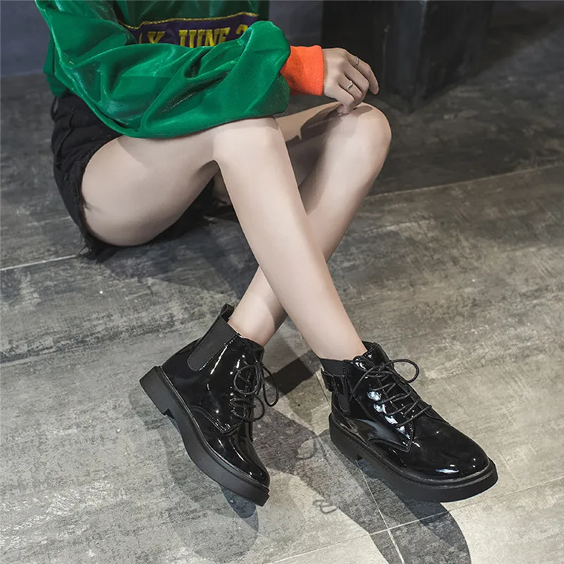 Женские ботинки на шнуровке, классические черные байкерские ботинки на плоской подошве, большие размеры, 2019