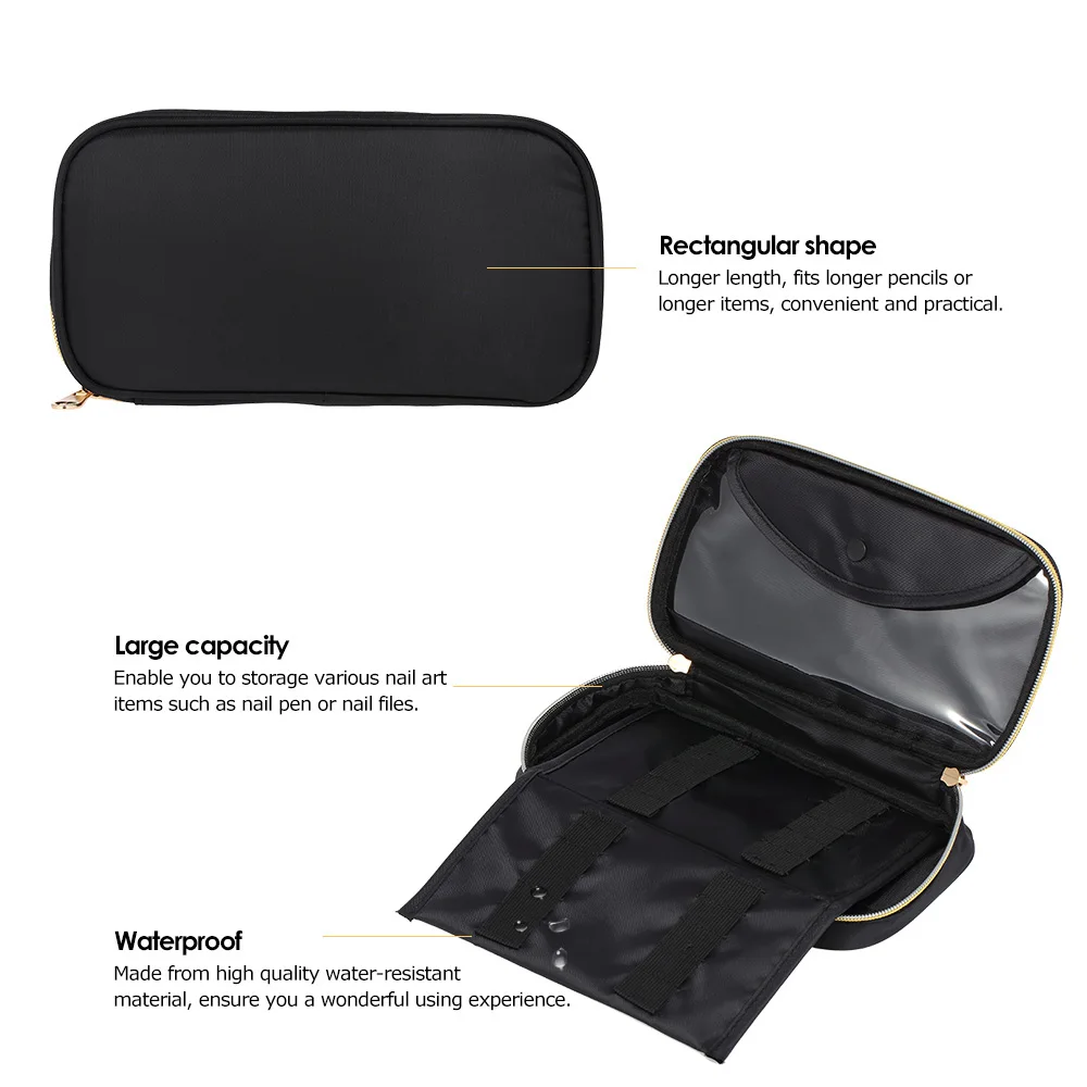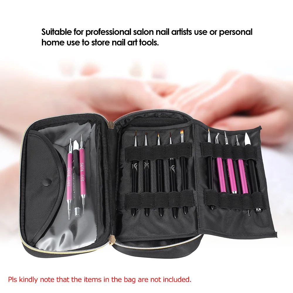 Эта сумка специально разработана для сбора кисточки для дизайна ногтей, сделать их чистыми и организованными. Водонепроницаемая и большая емкость делает ее идеальная сумка для вас.