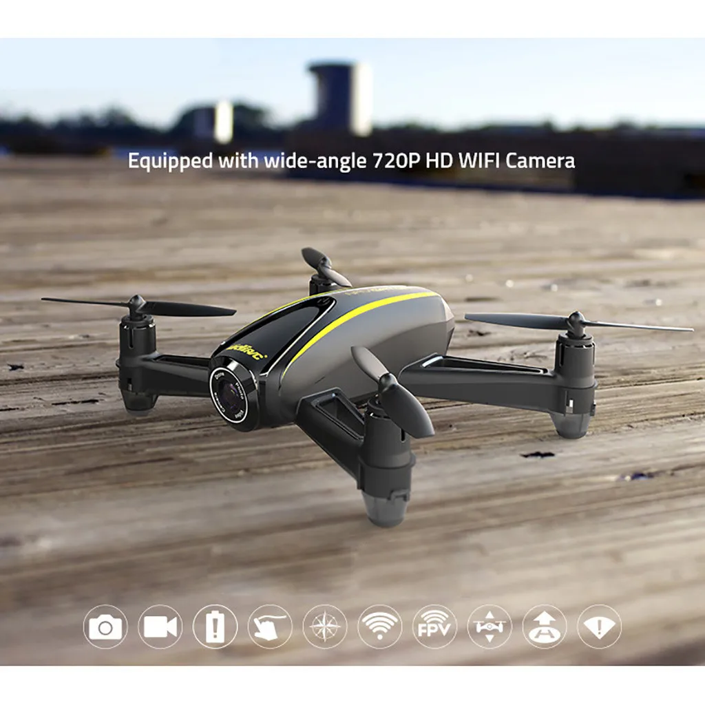 Материал ABS, способный нести удар с дизайном камеры Последняя система управления полетом с Регулируемый гироскоп чувствительностью, встроенный гироскопWi-Fi Трансмиссия FPV расстояние: 20-30 метров
