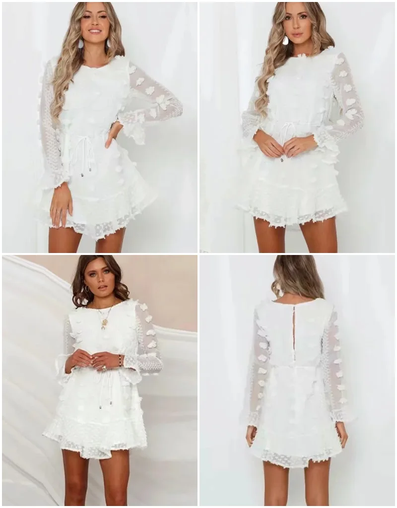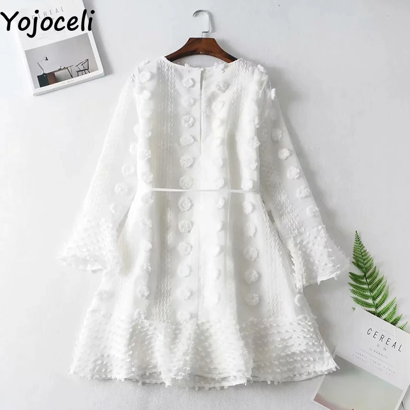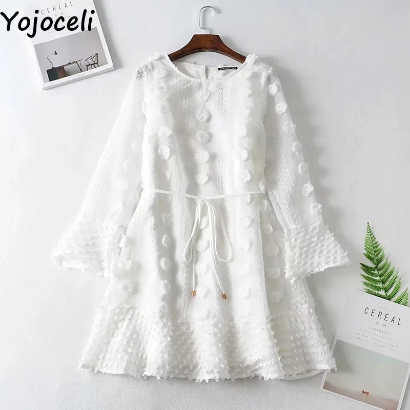 Yojoceli элегантное белое кружевное осеннее платье для женщин Повседневное вечернее короткое Повседневное Платье Женское vestidos сексуальное свободное платье с оборками