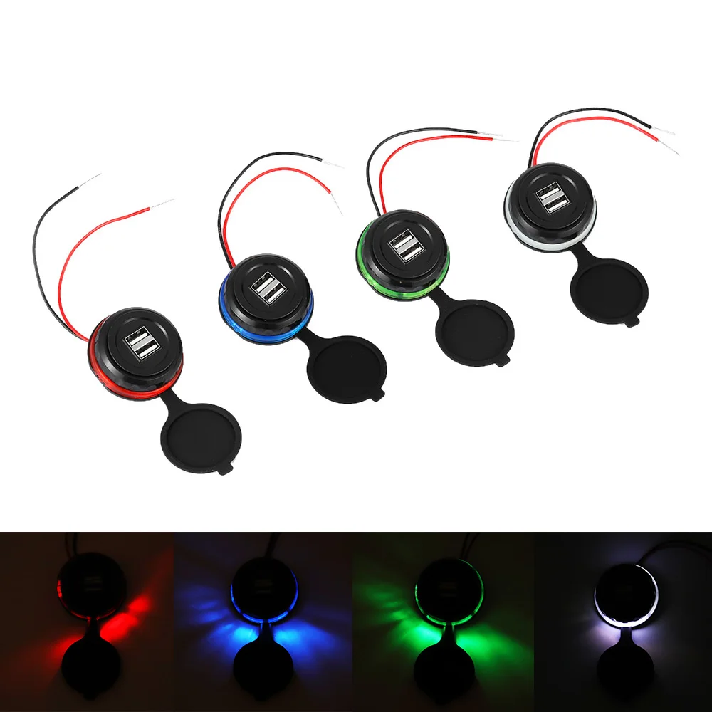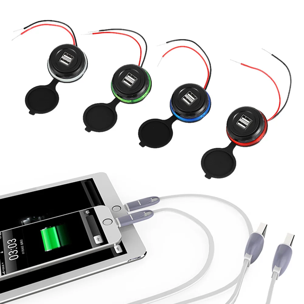 12-24 В, 3,1 А, два порта USB, светодиодный разъем для автомобильного зарядного устройства, водонепроницаемый адаптер с проводом, аксессуары для автомобильной электроники