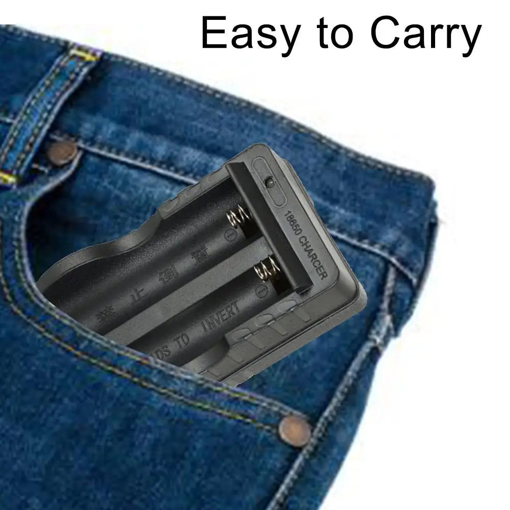 2, практичен и универсален, можно заряжать портативным зарядным устройством 18650 и других AAA аккумуляторные батареи для различных типов DC 3,7 V цилиндрические литиевые батареи.