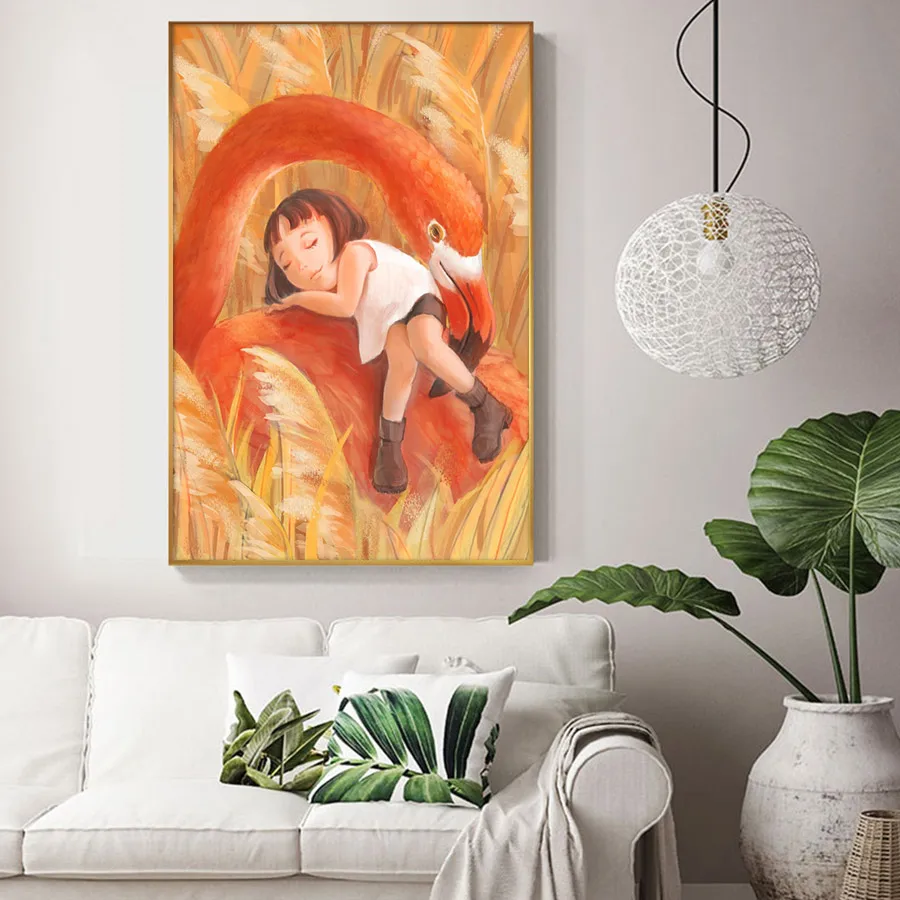 Наборы для вышивки крестиком, наборы для рукоделия, 11CT водорастворимые картины из холста, 14CT животные фламинго и Girl-NCMA013