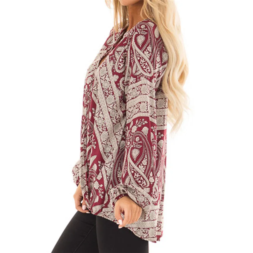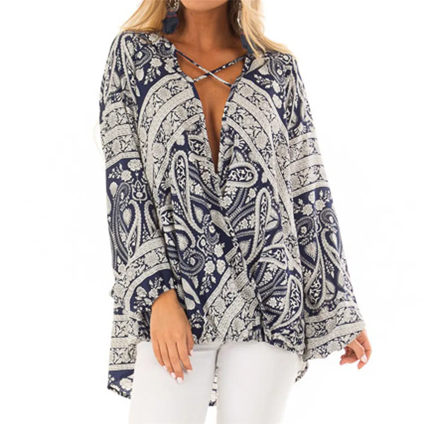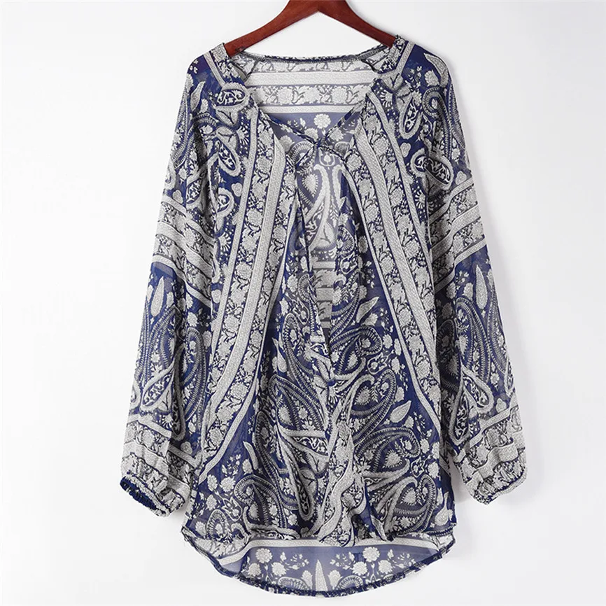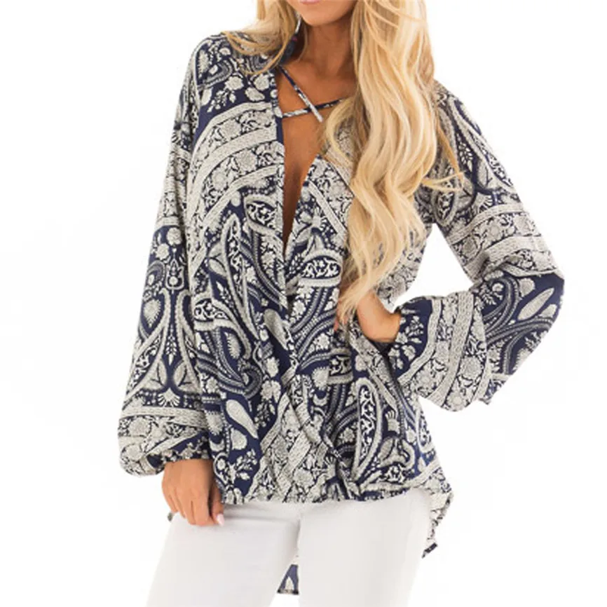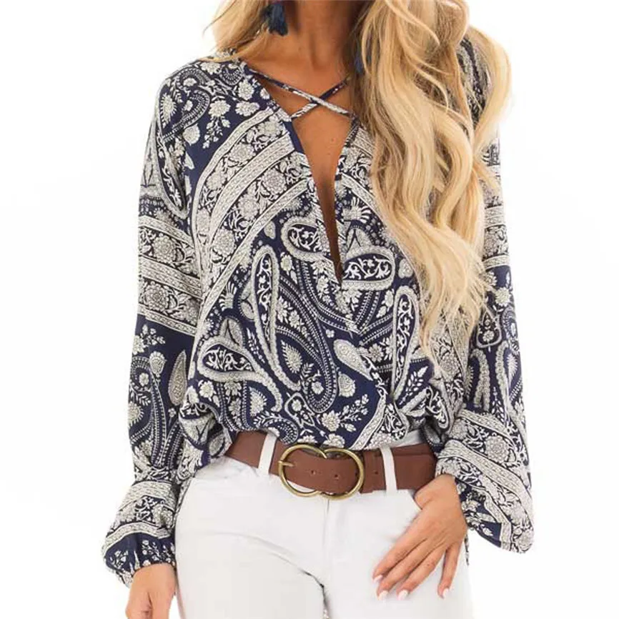 Женская шифоновая футболка с v-образным вырезом и длинным рукавом с модным принтом