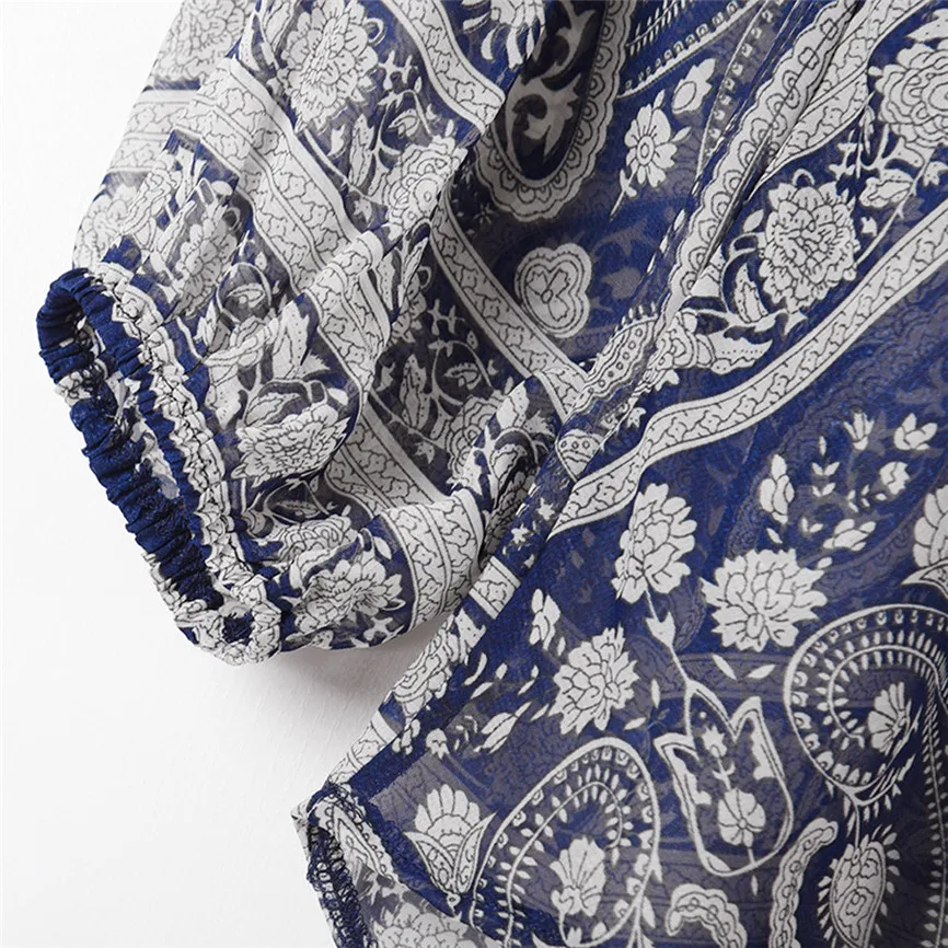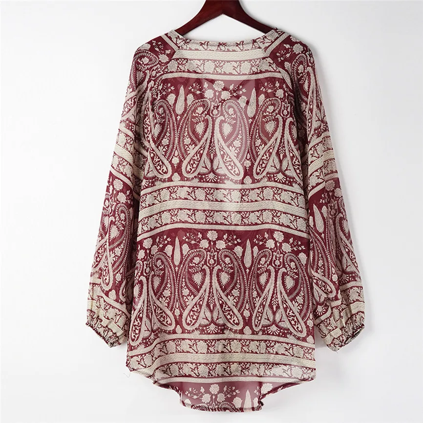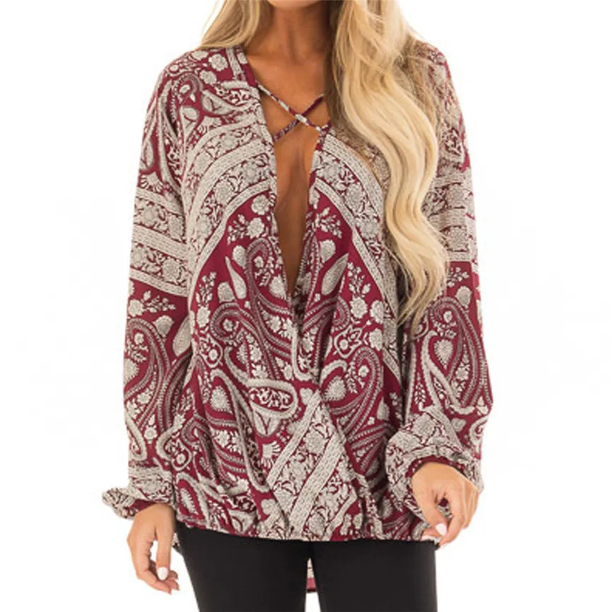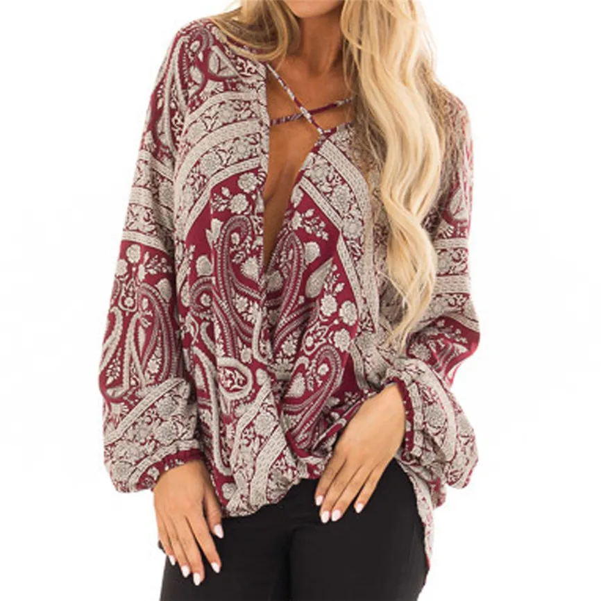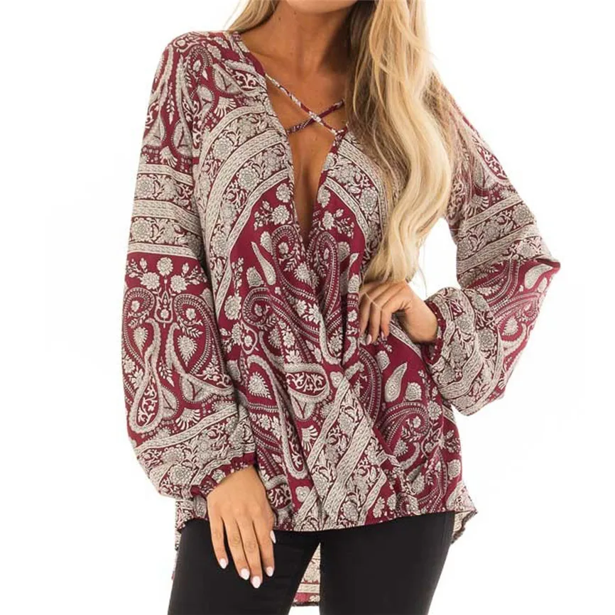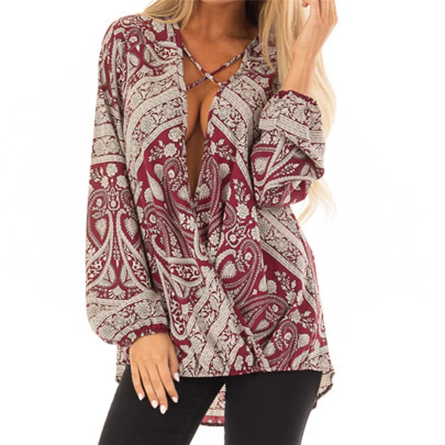 Женская шифоновая футболка с v-образным вырезом и длинным рукавом с модным принтом