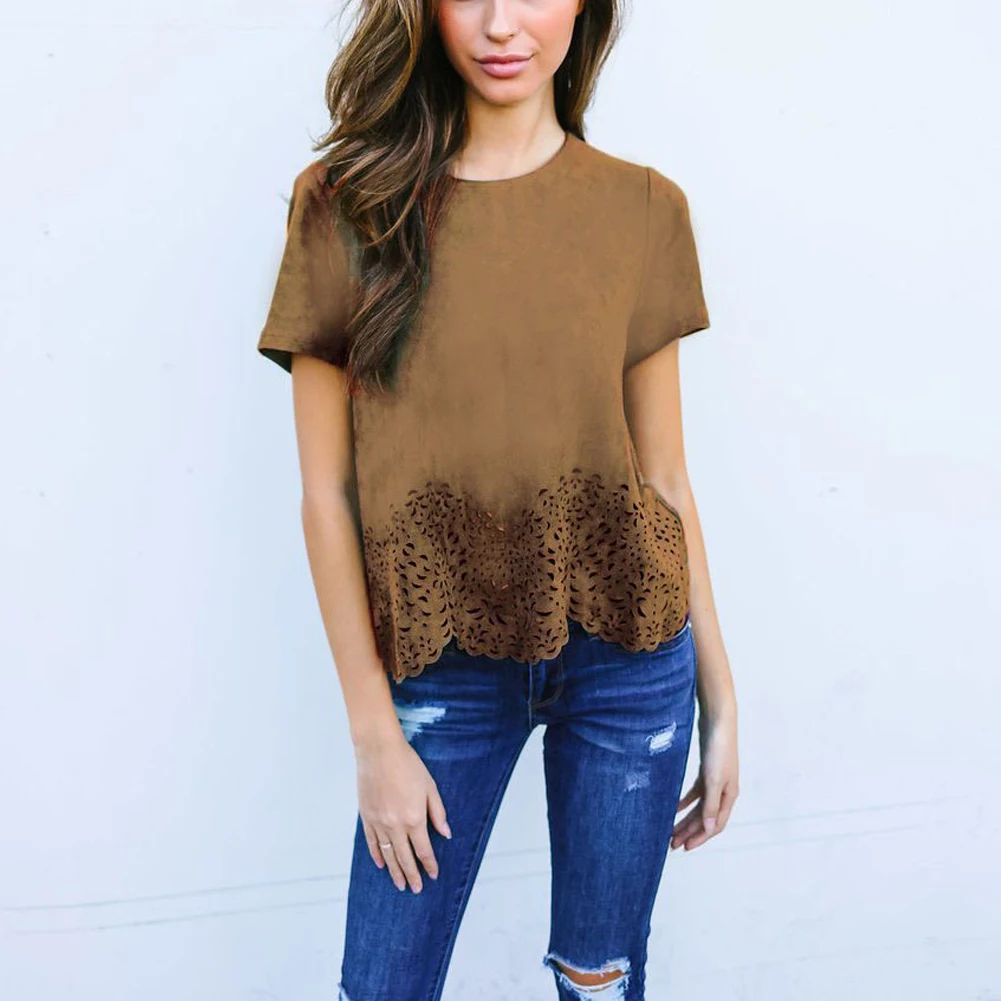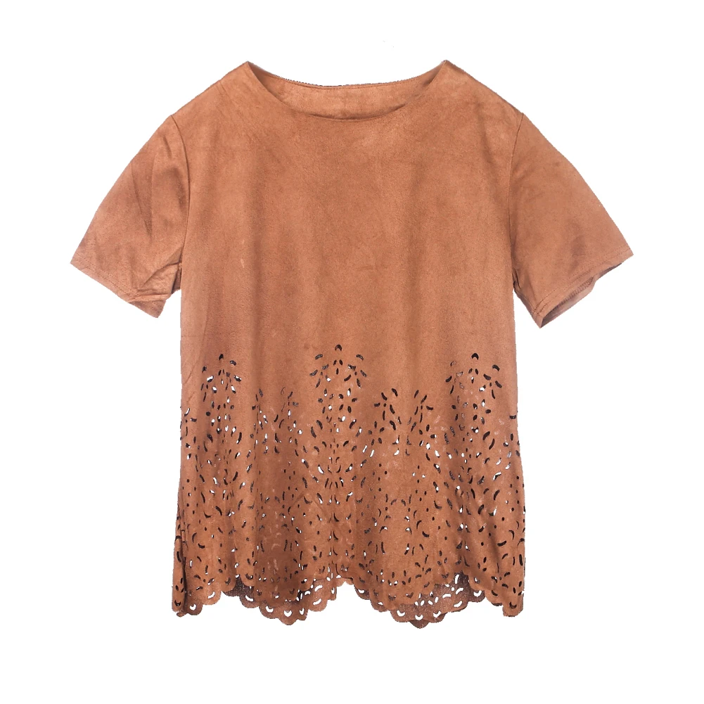 Новая мода, Великобритания Женская замшевая ткань Повседневная футболка женская летняя