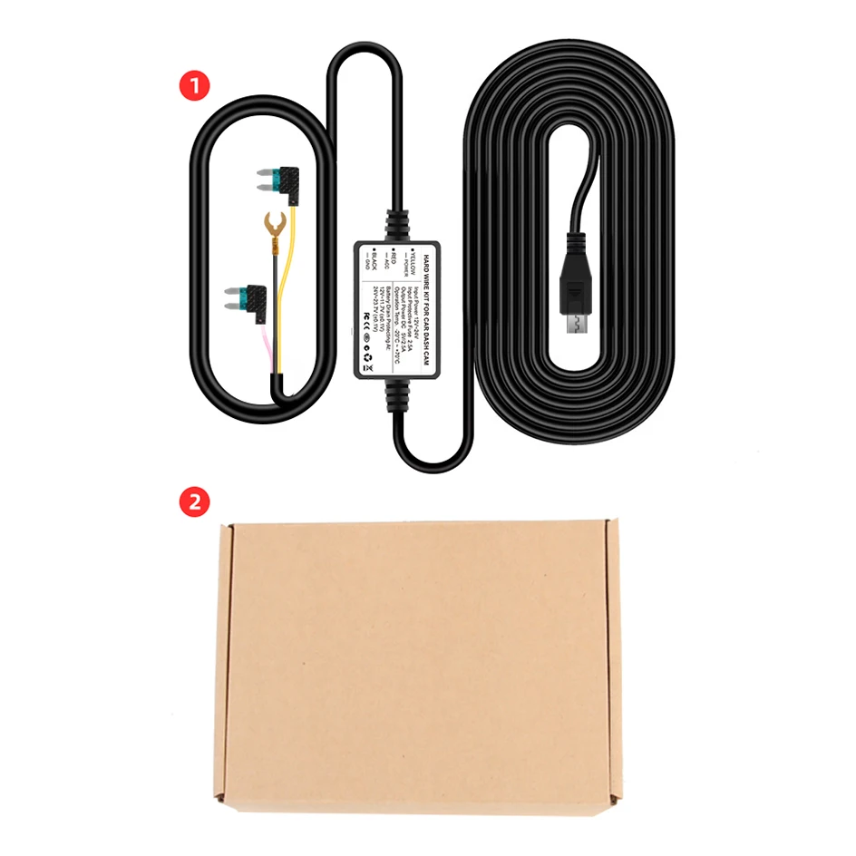 Комплект из жесткого провода 5 В, подключенный к автомобильному аккумулятору или блоку предохранителей, может бесперебойно поставлять питание для камеры dash в течение 24 часов. Он может даже поставить питание, когда автомобиль выключен. Для достижения этой функции, пожалуйста, убедитесь, что ваша dash cam составляет 145 контакта
