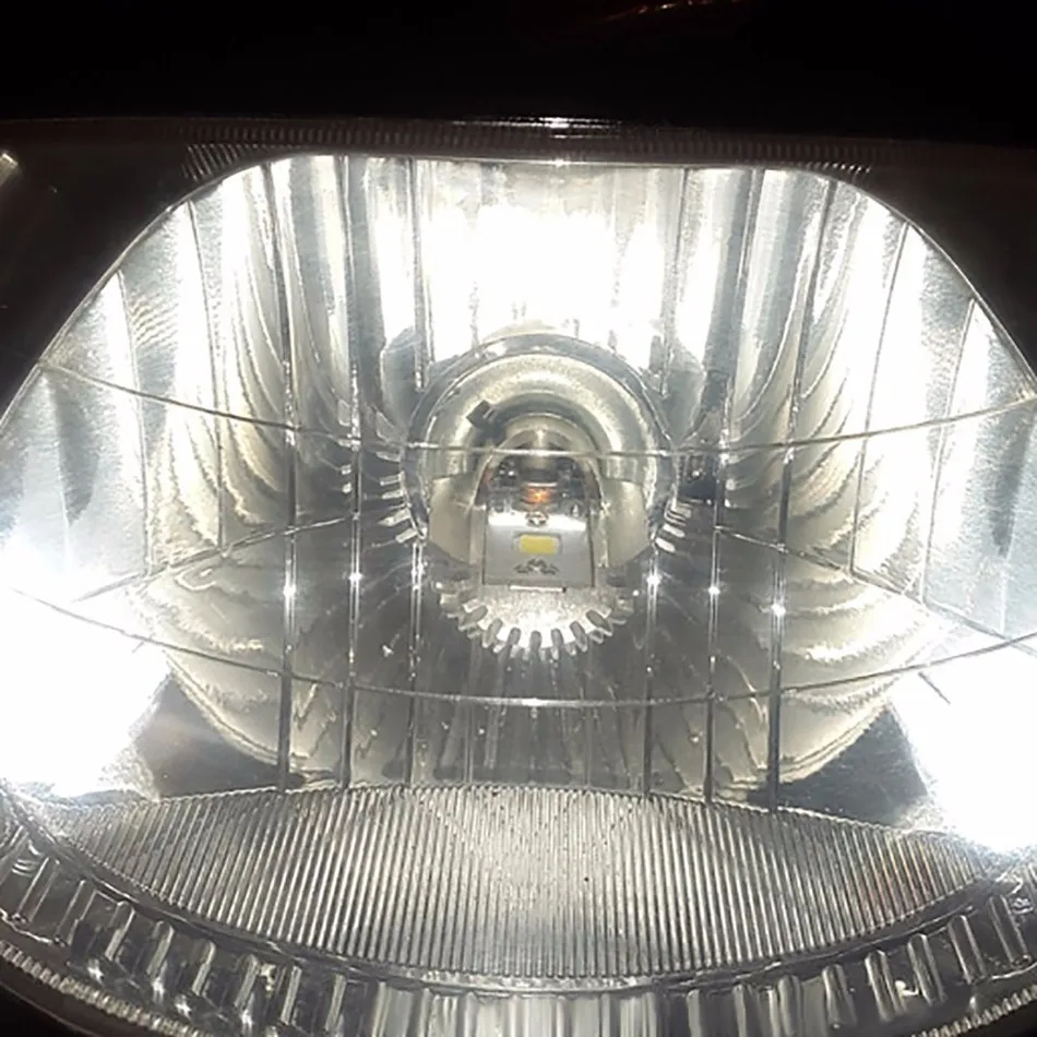 100% новый и оригинальный. Универсальная фара/прожектор для мотоцикла, Гнездо: H6/h4Мощность: высокая 9 Вт низкая 3,8 Вт Рабочее напряжение: 9-36 В постоянного тока Световой поток: 800-1000lm