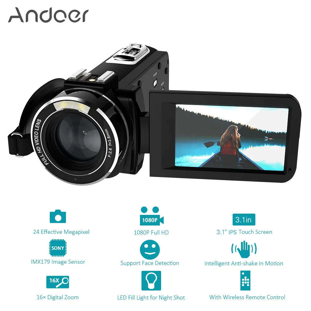 HDV-Z20 Портативная Цифровая видеокамера 1080 P Full HD Max 24 мегапикселя 16× Цифровая видеокамера с зумом 3,0 "Вращающийся ЖК-экран с пультом дистанционного управления Поддержка WiFi подключение уникальный дизайн горячей обуви