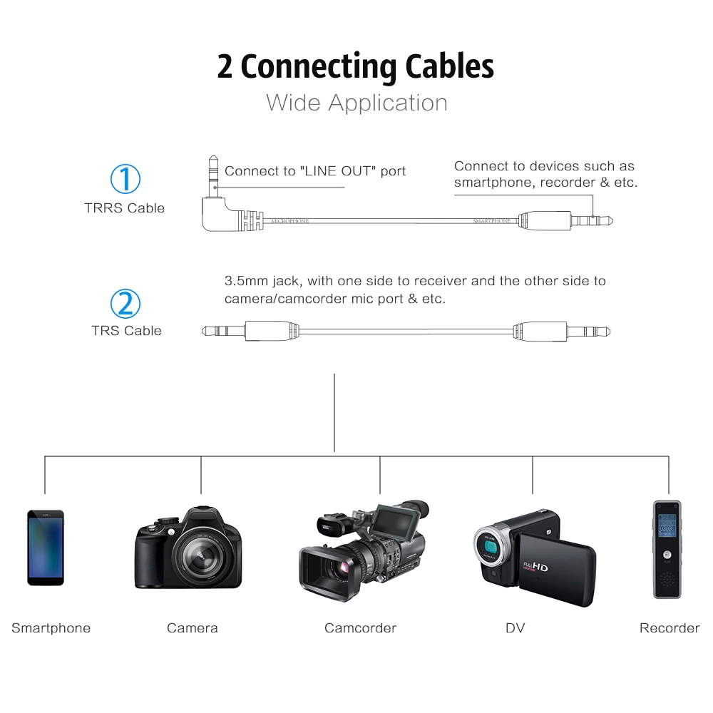 Беспроводная микрофонная система (передатчик + приемник), совместимая со смартфонами, DSLR камерами, Любительская видеокамера, ПК и т. Д.