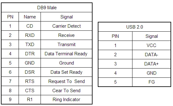 Usb-сигналы: VCC, DATA +, DATA-, GND и FG