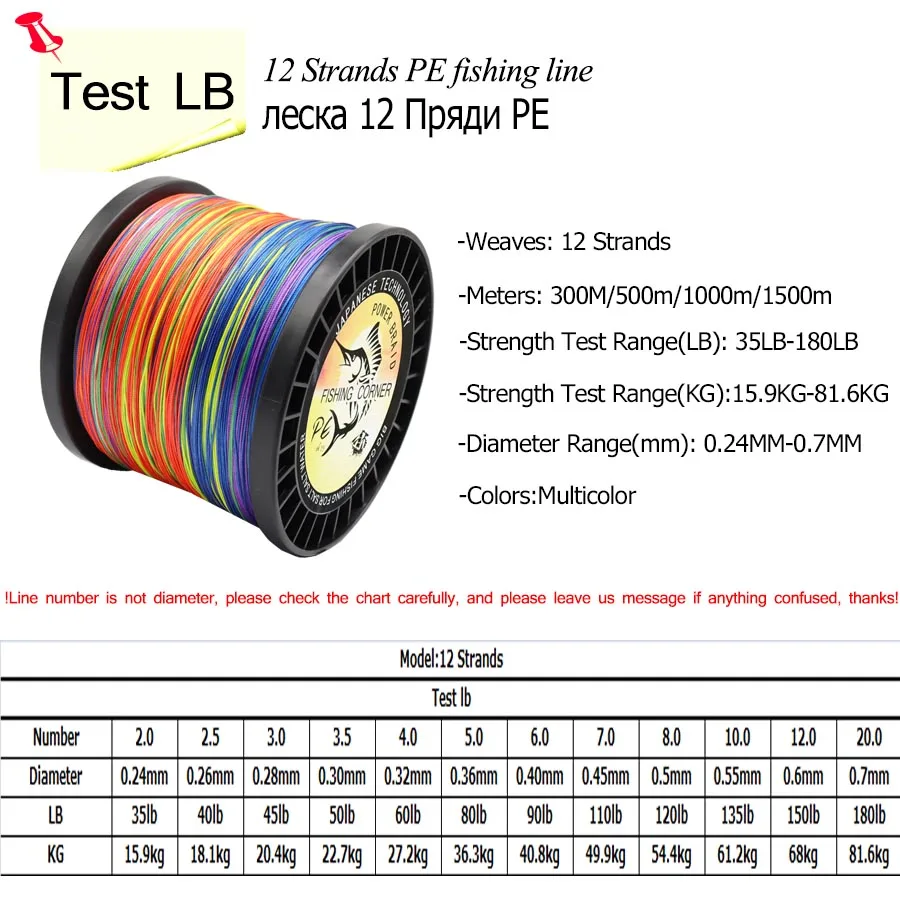 Номер лески 12 #: 150lb-0.60mm-68.0кг