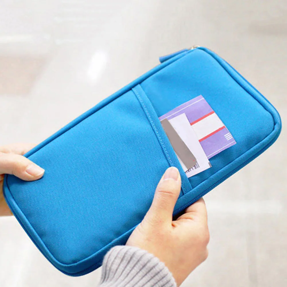Портативный Одноцветный унисекс дорожный кошелек на молнии с отделением для паспорта и карт