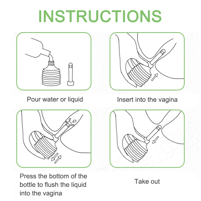 2. При промывке, супинании, лежа, приседании или сидении моющая головка вставляется во влагалище, сжимает жидкость, которая бутылка в влагалище, удерживает 5 минут, чтобы удалить.