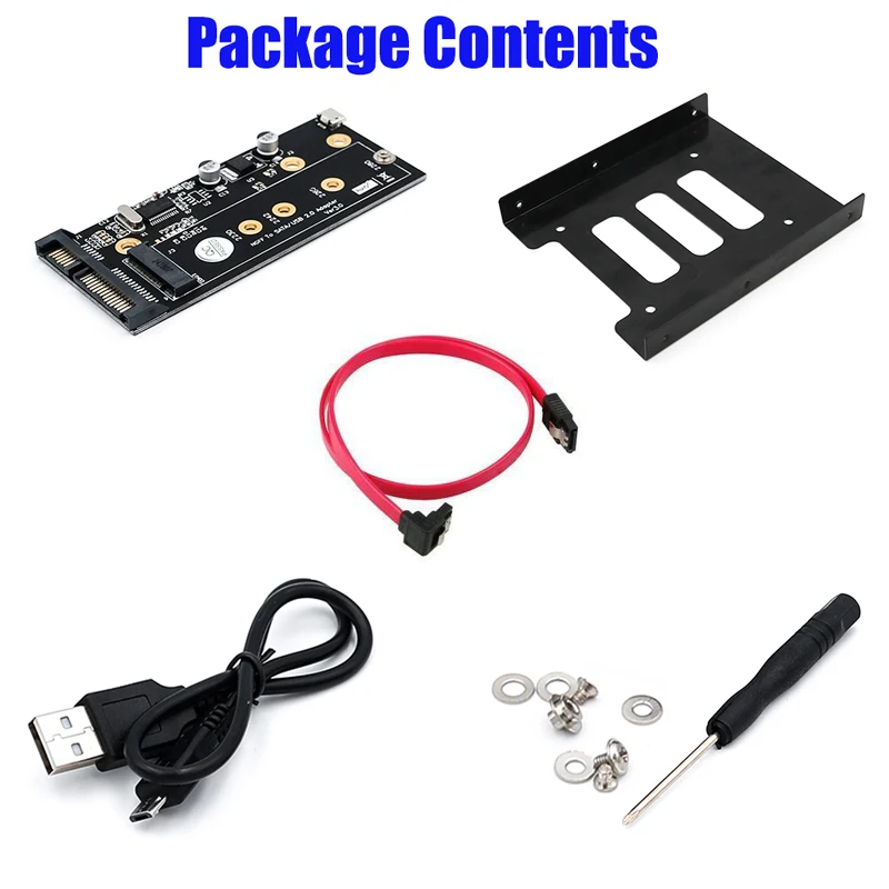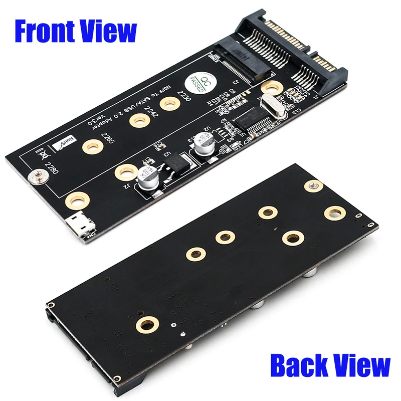 Адаптер позволяет пользователю конвертировать NGFF SSD(SATA тип шины) в интерфейс SATA 2,5 и USB 2,0