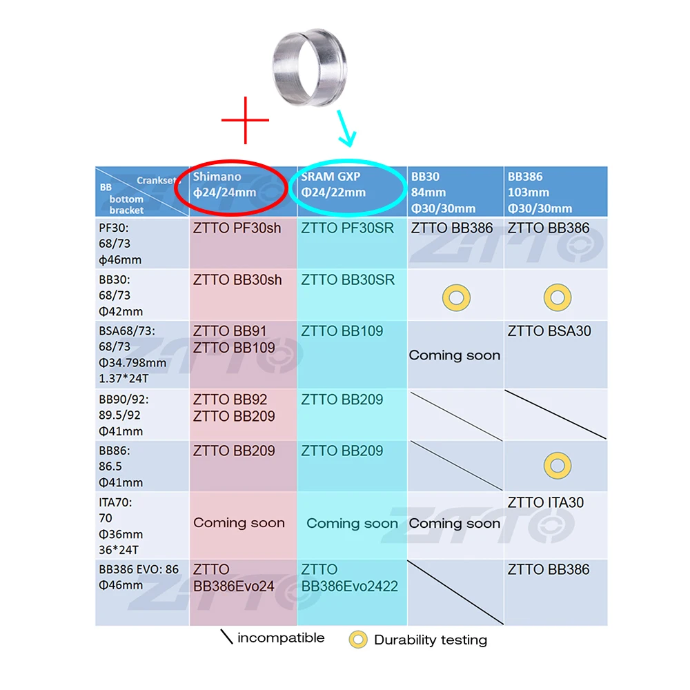 ZTTO кареток аксессуары Адаптер GXP φ24mm → φ22mm Шайбами 0,5 мм Вариант только для одного аксессуара