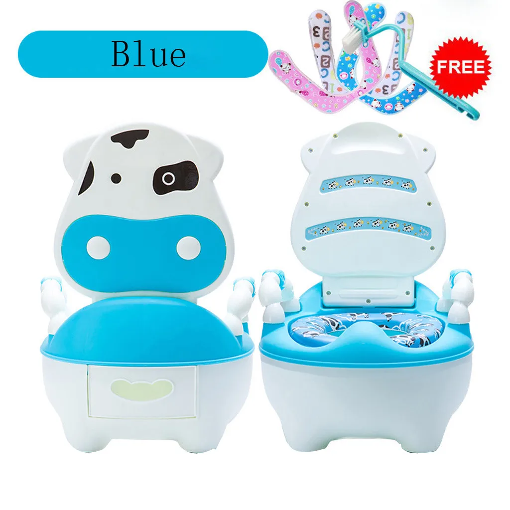 Lovely Cute Cow Potty Chair for Boys and Girls Toddler Potty Training Toilet Product Information: Gender: Unisex 100% Brand New & High quality. Name: Cow Potty Chair Colour: Blue/Pink Style: safety, comfort, convenience Material: Environmental friendly PP material Weight: 1.2kg Description: Our lovely cute cow potty attract to babies and invite them go potty willingly. The soft cushion helps your child feel comfortable as sitting on sofa, in the meanwhile it's detachable for easy cleaning. The cow potty is equipped with non-slip pads on the feet, easy to grip handles and a high back, splash guard at front helps keep seat clean and germ free. It is suitable for children 1-5 years old. Function introduction: Packing List: 1x Potty Chair+1PC Brush+1PC Mat