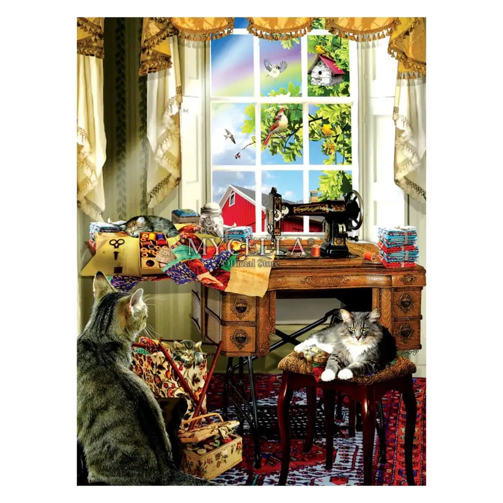 Швейная комната 5d Diy алмазная живопись вышивка крестиком рукоделие мозаика полная Алмазная вышивка стеганая кошка День матери наклейки на стену подарок, поделки(ACD71)