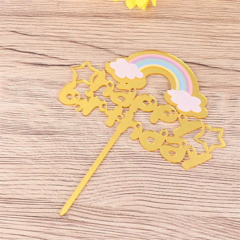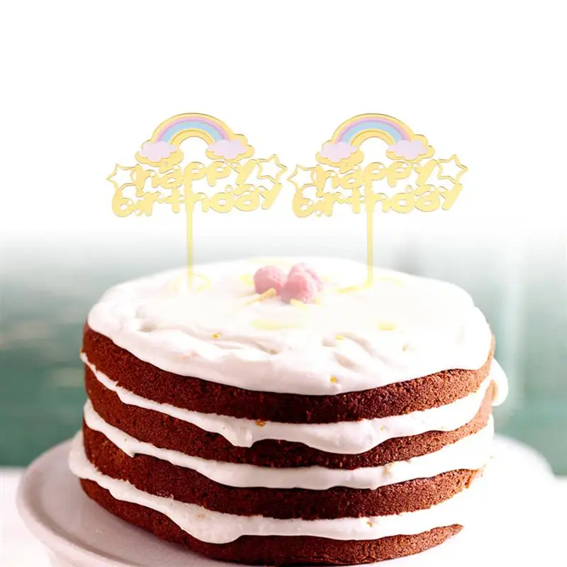 2 шт. Радужный Топпер для торта с днем рождения, украшения торта, топперы для кексов, десерт для выпечки, фруктовый декор, вставки, открытки, праздничные сувениры