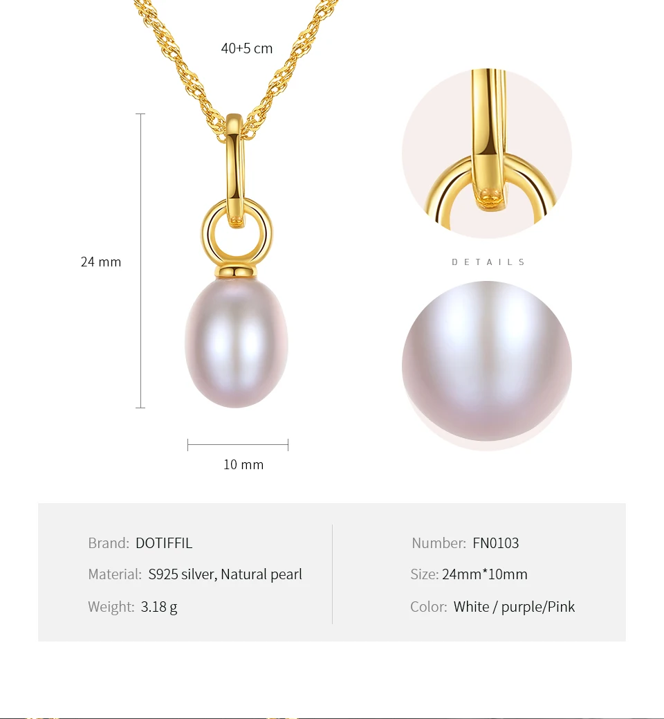 Бренд: DOTEFFIL Тип камня: 100% натуральный пресноводный жемчуг Цвет жемчуга: белый, розовый Жемчужный Блеск: AAAAA Поверхность жемчуга: без дефектов Размер: 32 мм * 25 мм Длина ожерелья: 40 + 5 см Вес: 6,35 г Материал металла: 100% 925 пробы Серебряный Металлический штамп: S925 Упаковка: Подарочная сумка Они модные и элегантные, подходят для ношения круглый год Вы можете носить его на свадьбу/вечерние/помолвки/юбилей Роскошная блестящая ручная работа/высокое качество