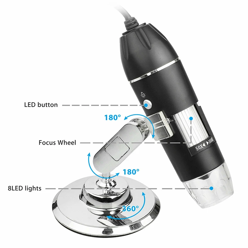 * Многофункциональный микроскоп: Портативный USB цифровой микроскоп-это не только полезные и забавные инструменты для увеличения для детей, студентов, коллекционеров, тестеров, но также хорошо для тех, кто заинтересован в изучении микроскопического мира. Он предлагает людям подробную информацию о животных, растениях и т. д.