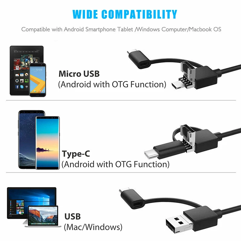 * Большая совместимость с 3 в 1 дизайном: дизайн с 3 в 1 USB/Micro USB/USB-C конвертируемым интерфейсом, микроскоп может работать не только с Android 4,2 + смартфоном с функцией OTG, но также подходит для компьютера Windows 7/8/10 и MacBook OS. (Примечание: usb-микроскоп не поддерживает Смартфон IPHONE IOS.)