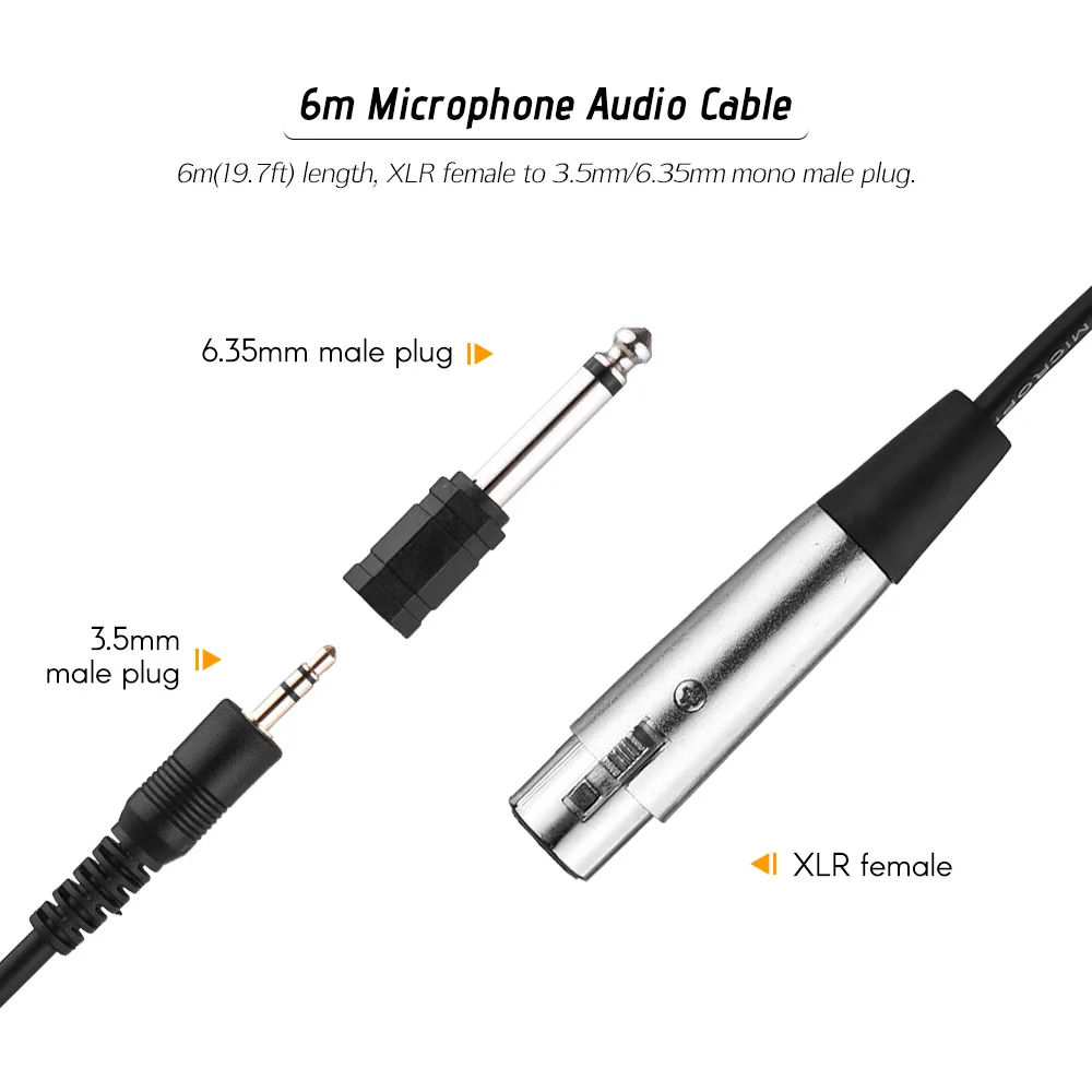 Микрофонный кабель: 6 м (19.7ft) длина, XLR до 3,5 мм/6,35 мм моно-штекер
