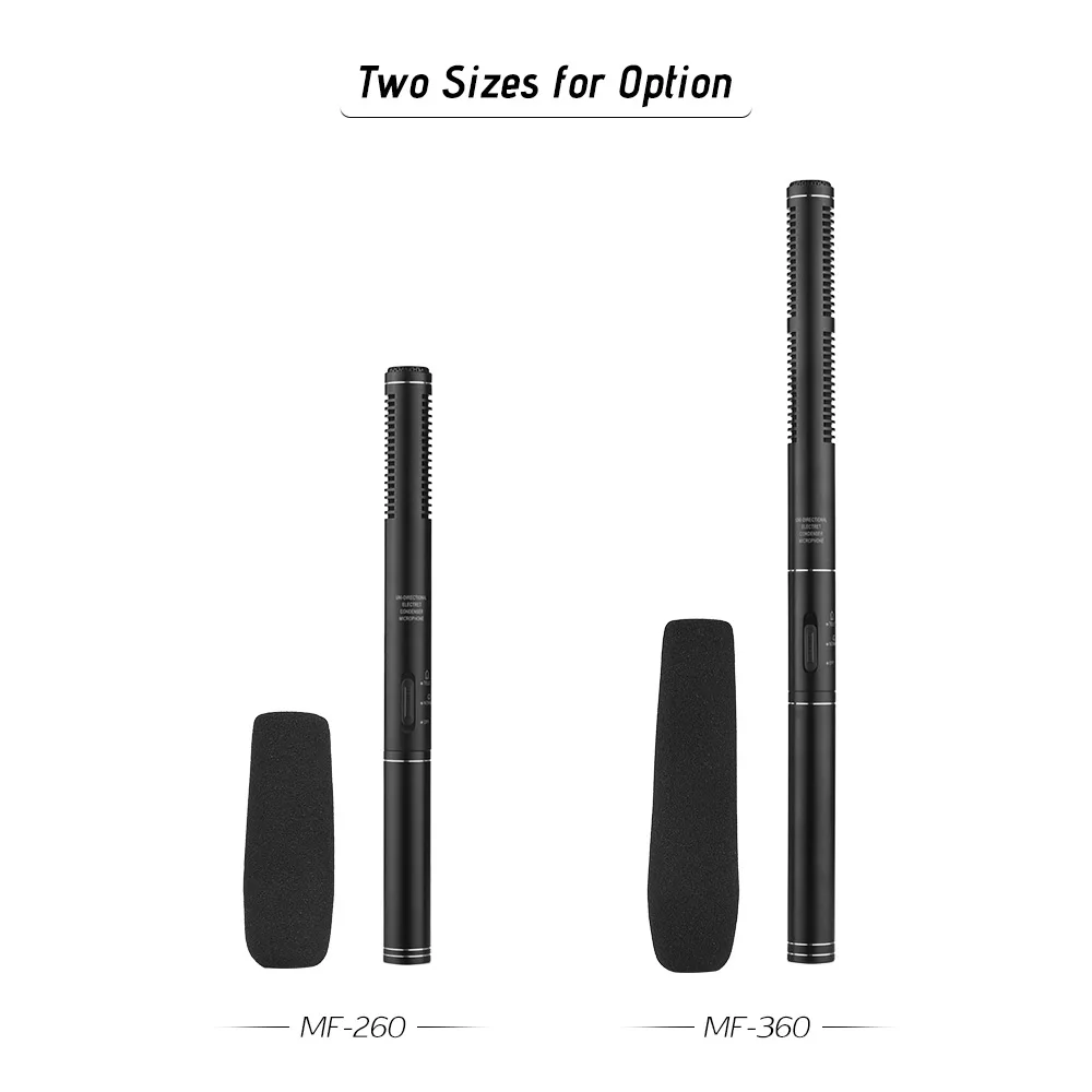 Поставляется с 2 держателями микрофона для фиксации микрофона на камере или подставке для микрофона. Съемное поролоновое ветровое стекло может эффективно уменьшить шум во время звукозаписи.