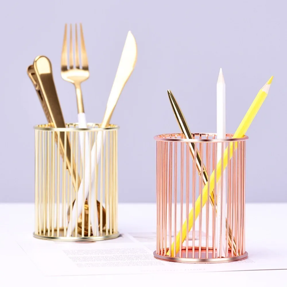 Особенности: 1. Изготовлен из железа, безопасный и нетоксичный, без запаха и прочный. 2. Он может хранить вашу ручку, палку для еды и Кисть для макияжа, прост в использовании. 3. Портативный и легкий, легко носить с собой. 4. Многоразовые и долговечные: его можно использовать многократно и долговечно для длительного использования. 5. Это полезный органайзер для хранения кухни, офиса, школы, прост в использовании. Параметры: Материал: железо Размеры: 10*8 см/3,94 * 3.15in Цвет: Золотой, розовое золото Список продуктов: 1 * ящик для хранения