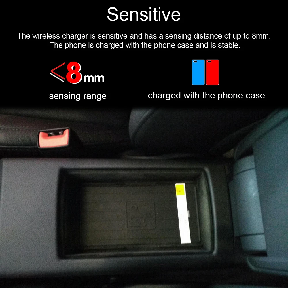 Беспроводное зарядное устройство чувствительное и имеет расстояние срабатывания до 8 мм. Телефон заряжен чехлом телефона и стабильный.
