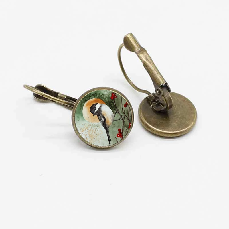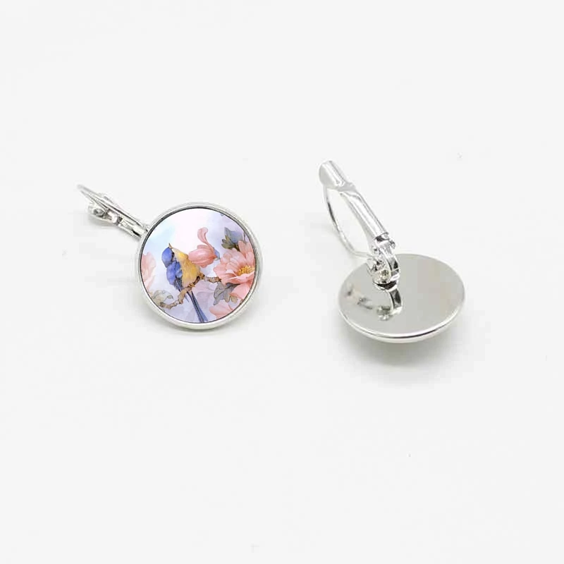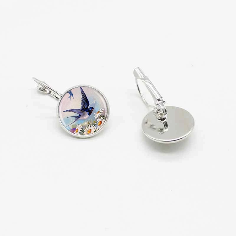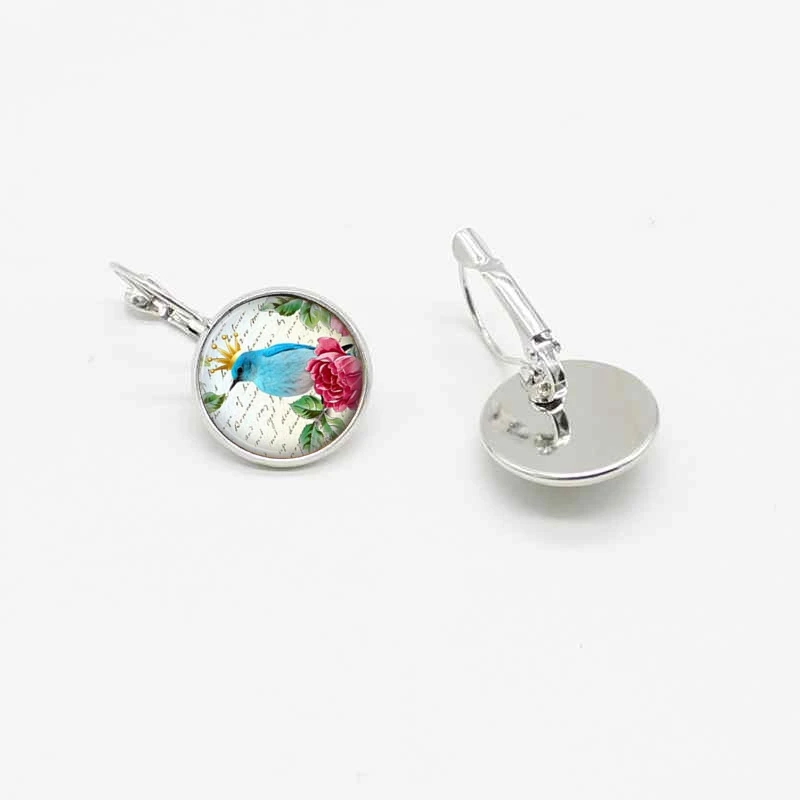 Наименование товара: Серьги Категория товара: стеклянные серьги Материал изделия: сплав + стекло Размер изделия: диаметр узора 16 мм Вес изделия: около 10 г Упаковка: пакет OPP упакован отдельно Цвет изделия: серебристый. Античная бронза