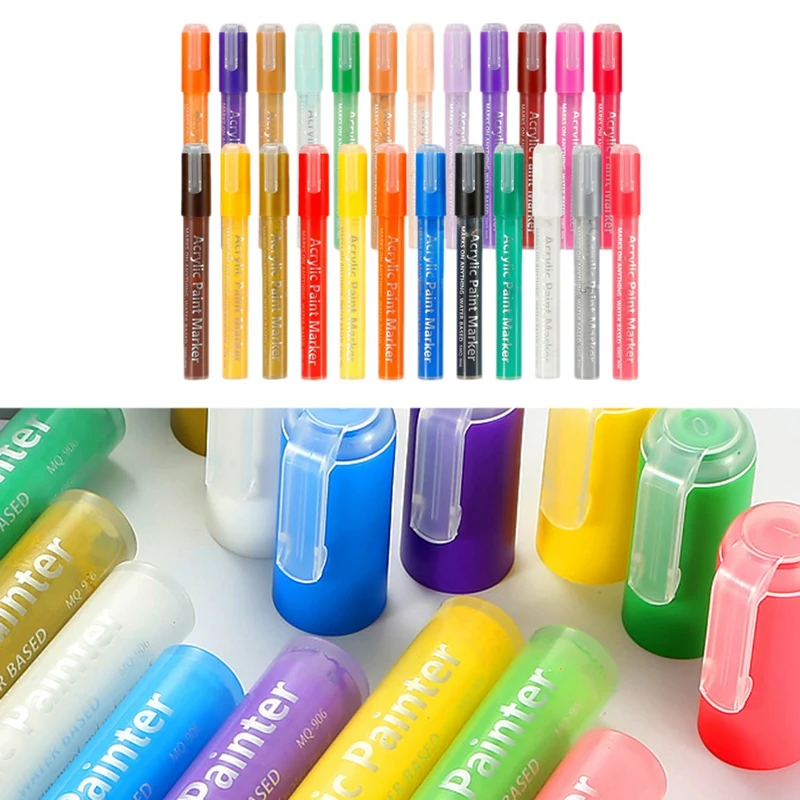 24 цвета Акриловые маркеры для красок ручки краски для красок ткань для окрашивания красок сделай сам Ремесло изготовление карт художественные школьные принадлежности Преимущество: 1. Акриловые Яркие цвета, акриловые ручки для рисования, набор из 24 разных цветов, позволяют рисовать или добавлять украшения для вашего деревянного ремесла, стеклянных банок, пасхальных пластиковых яиц, рождественских шариков, открыток, окрашенных камней, камней, парусиновая обувь, деревянные ломтики, глиняные потеки, маркеры для ткани.