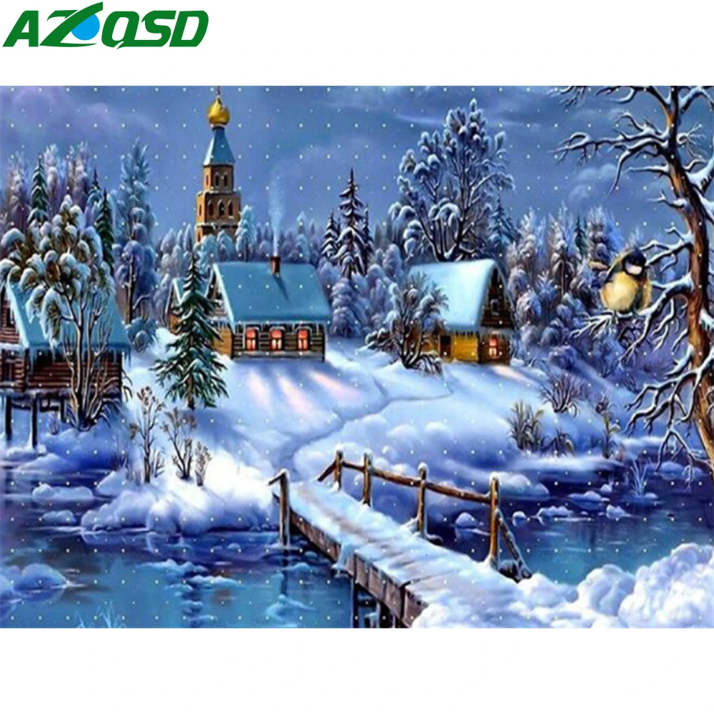 Название продукта: AZQSD 5D алмазная картина «сделай сам», зимняя полностью квадратная картина стразами, пейзаж, алмазная вышивка, украшение для дома