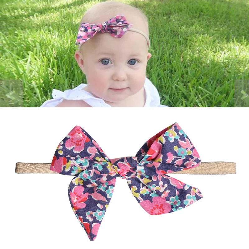 1 шт., повязка на голову из хлопка с бантиками для новорожденных, Детская повязка на голову принцессы с цветочным принтом