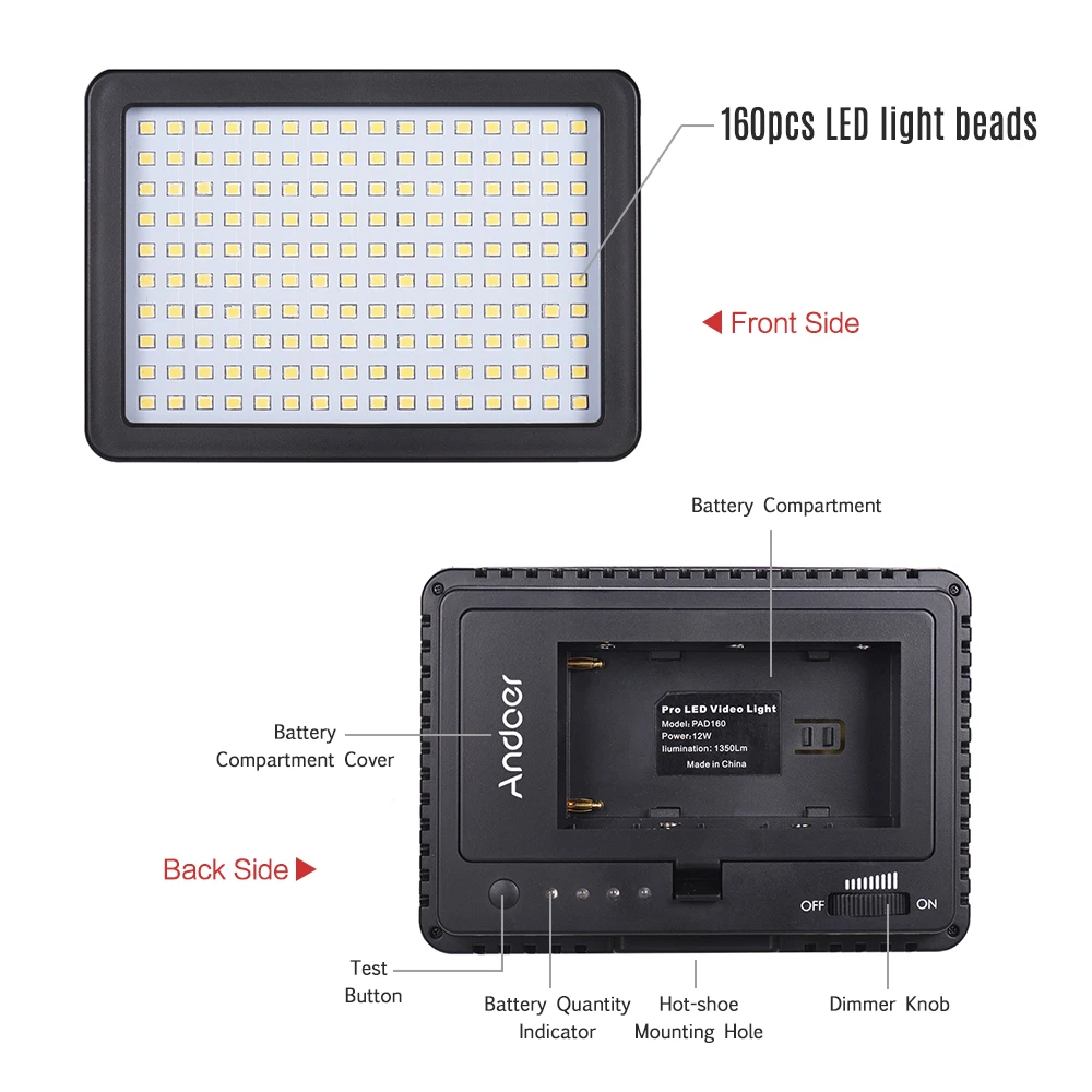 Светодиодный светильник 160 шт. для оптимального освещения и рассеивателя. Портативный и легкий, легко носить с собой и хранить.