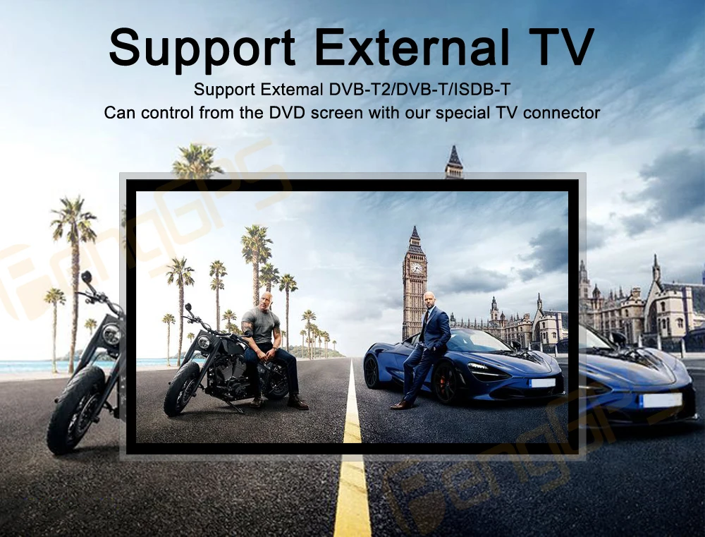 1. Поддержка функции DVR: Поддержка переднего видеорегистратора, Запись вождения, делает путешествие более безопасным. 2. Поддержка камеры заднего вида: автоматическая работа при реверсе, может отображать обратную дорожку. 3. Поддержка внешнего приемника DAB (управляется Toush screen) 4. OBD поддерживает OBD II: Автомобильные диагностические инструменты, вы можете узнать свой статус автомобиля в любое время и в любом месте. Можно купить ключ OBD у нас 5, поддержка цифрового ТВ: может поддерживать DVB-T2 / ISDB-T, с нашим DVB-T2 / ISDB-T коробкой и разъемом, может работать на нашем автомобильном dvd-экране, 6. Поддержка carplay: Поддержка Android AUTO и Carplay 7. Поддержка контроля давления в шинах: обзор давления в шинах в реальном времени, защита безопасности дорожного движения. 8, Поддержка модуля 4G: подключение к Интернету в любое время, в любом месте, поделиться пейзажем с друзьями.