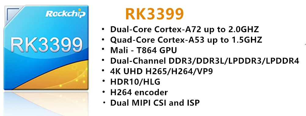 -Большая. Маленький Архитектура: двухъядерный Cortex-A72 + quad-core Cortex-A53 архитектуры, 64-разрядный процессор -Основная частота превышает 1,8 ГГц Графический процессор rk3399 использует четырехъядерный процессор arm нового поколения с высококачественным процессором изображений Mali-T860, который интегрирует больше технологий сжатия полосы пропускания: такие как интеллектуальная суперпозиция, ASTC, локальное хранилище пикселей и т. Д., А также поддерживает больше графических и вычислительных интерфейсов. Общая производительность на 45% выше, чем у предыдущего поколения.